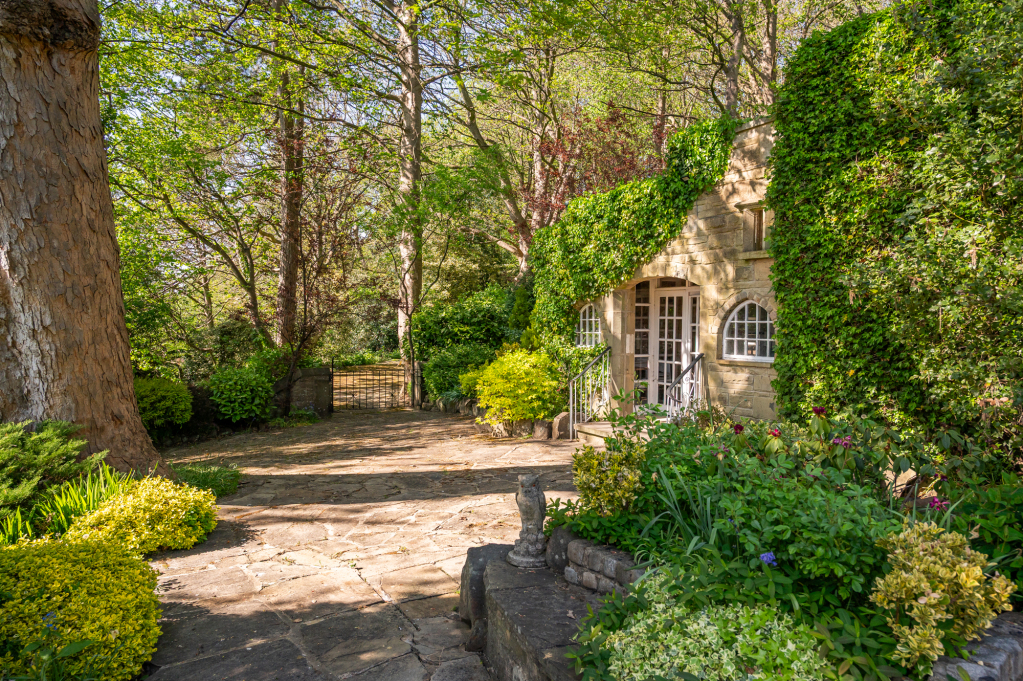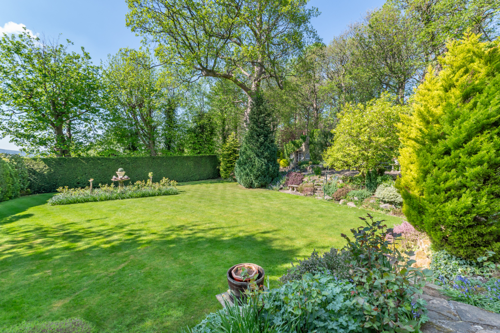 The house provides seclusion and privacy and is complemented by superior grounds and is situated in a spectacular setting approached via private gateway, driveway with beautifully presented formal gardens with lawn, flower beds, paved patios, woodland area and many mature trees, there is also an entertaining area and summerhouse. Gardens, woodland and land extending to approximately 1.9 Acres. Garage block from the main driveway with lower ground floor and two further garages to the rear.