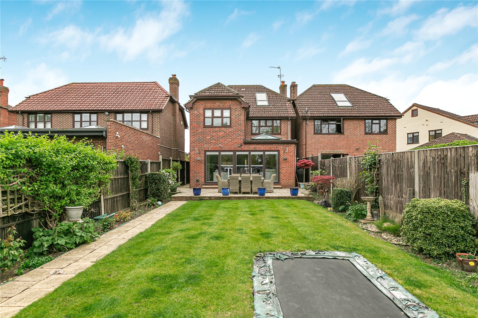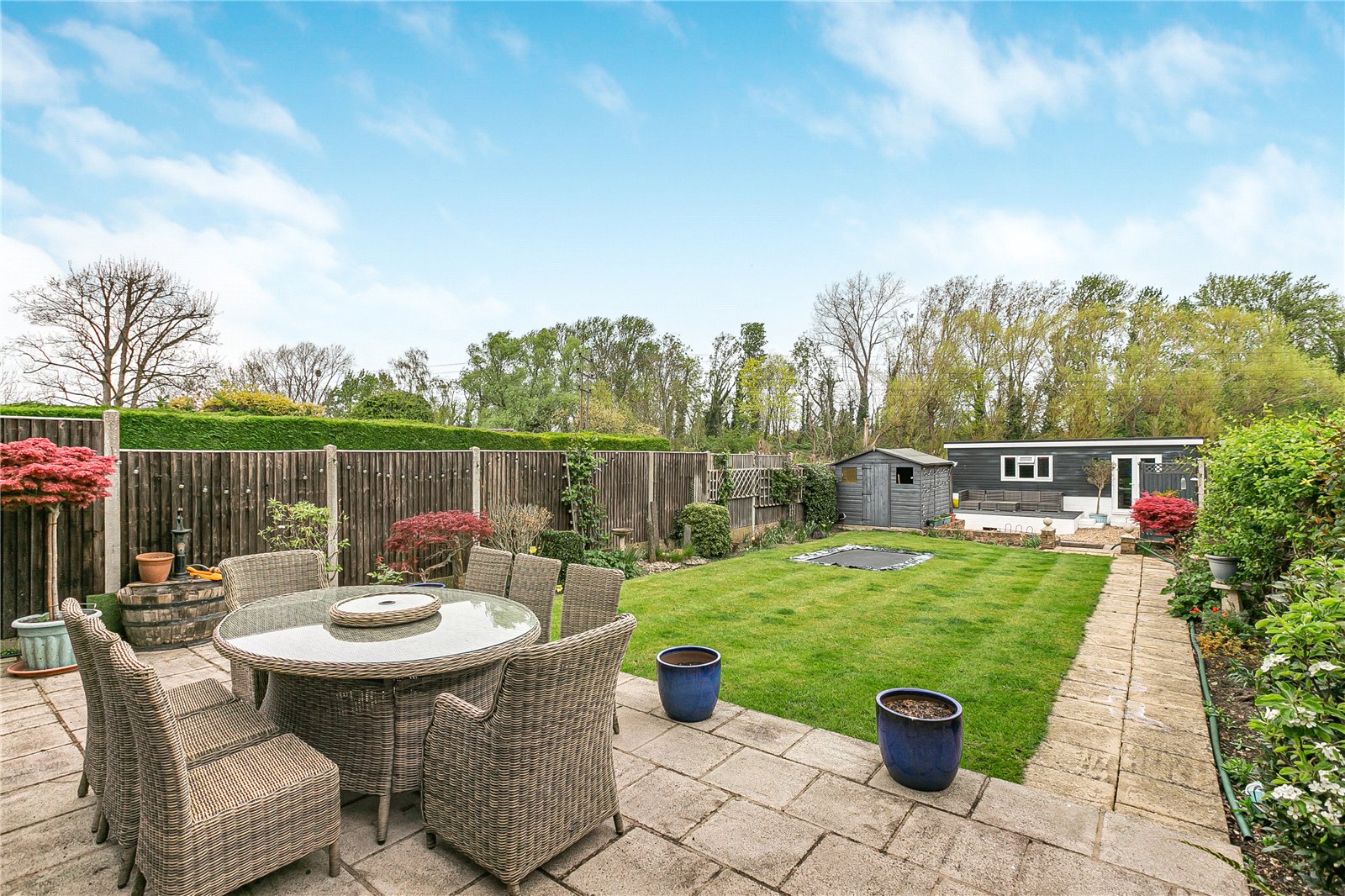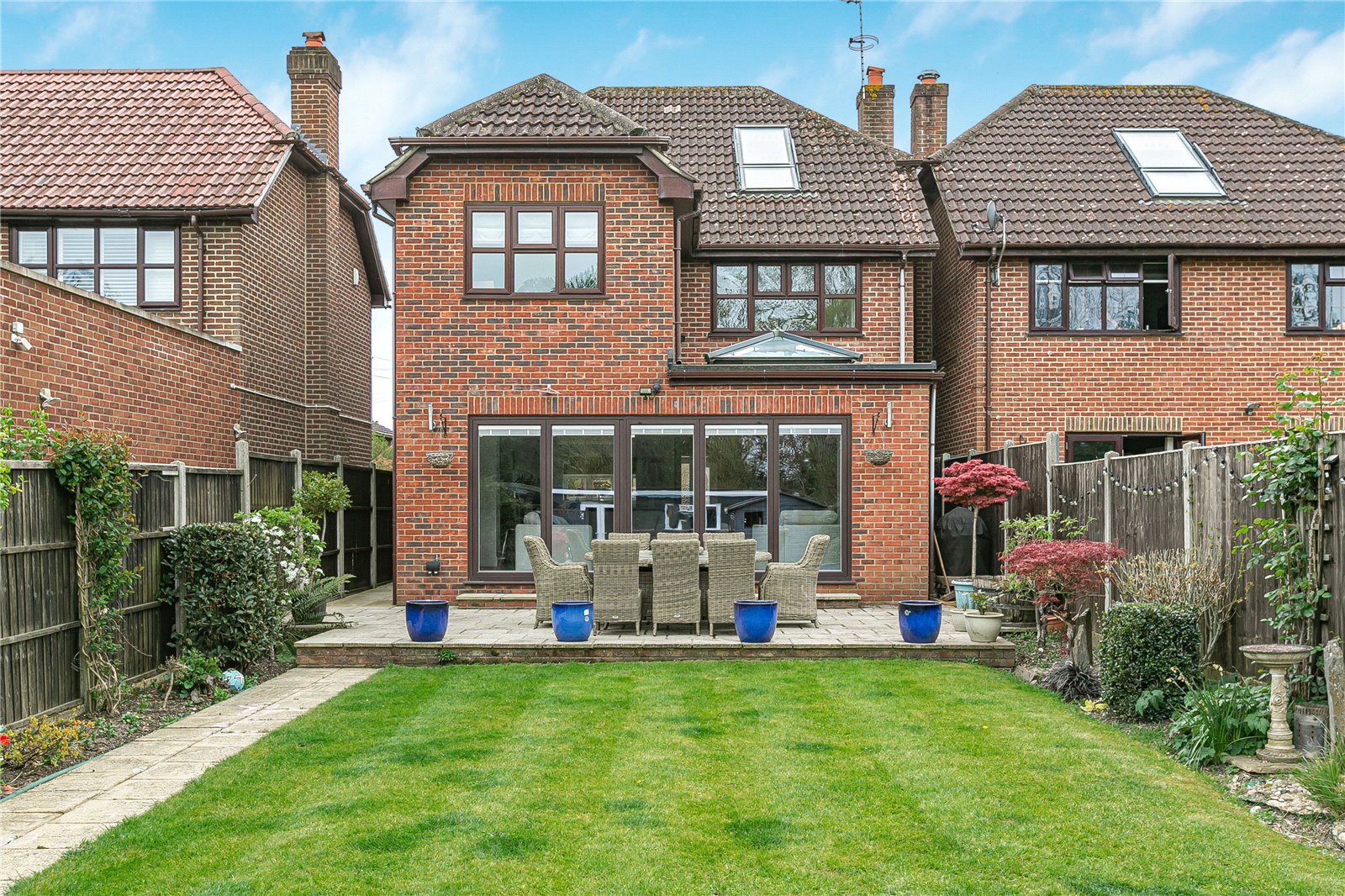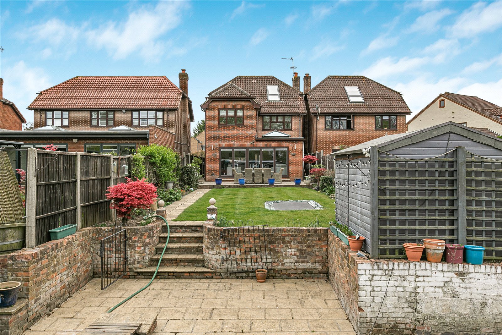 Externally, the property truly stands out with its large, well-maintained rear garden, uniquely enhanced by a charming running stream that creates a tranquil and picturesque setting. Additionally, there is a good-sized studio in the garden with electricity so this could be used as an office, gym or games room. To the front, the home benefits from a garage and ample off-street parking for multiple vehicles.