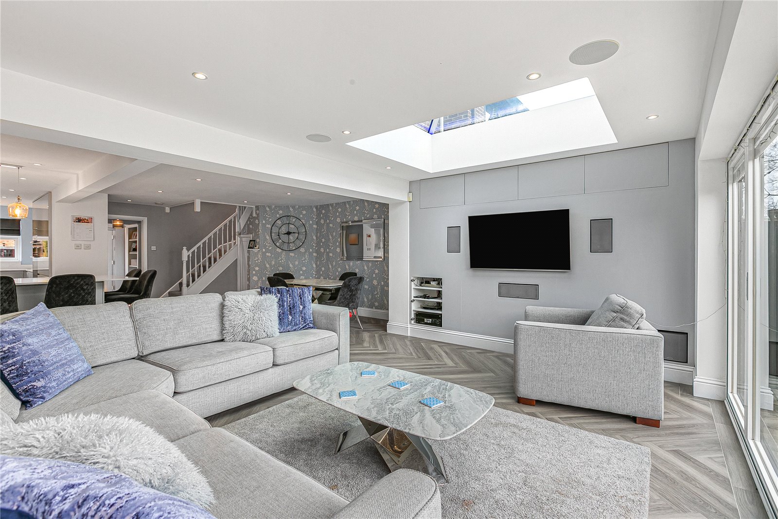 This spacious and versatile property offers beautifully arranged accommodation across three floors. The ground floor features a bright and expansive open-plan reception/kitchen and dining area, perfect for both everyday living. The modern, fully fitted kitchen is complemented by a convenient utility room.