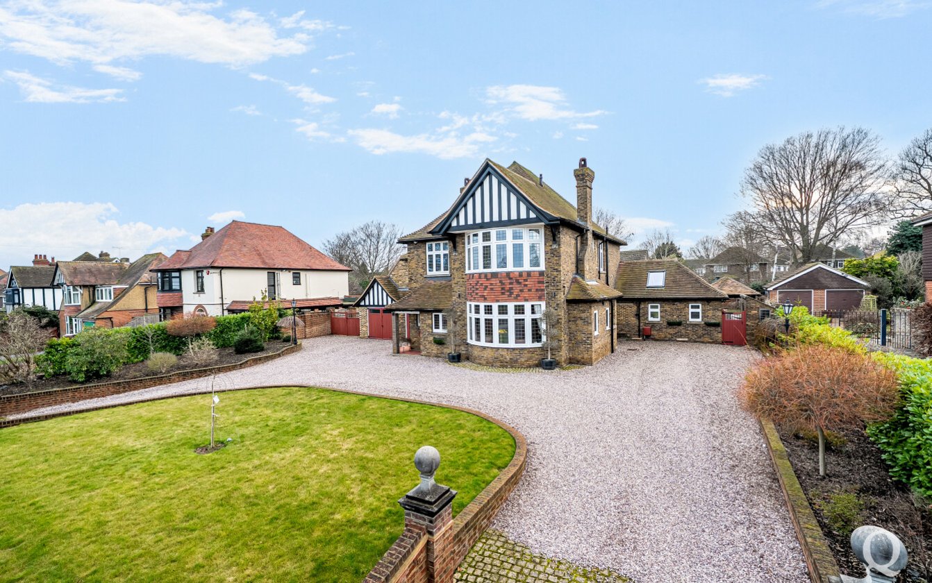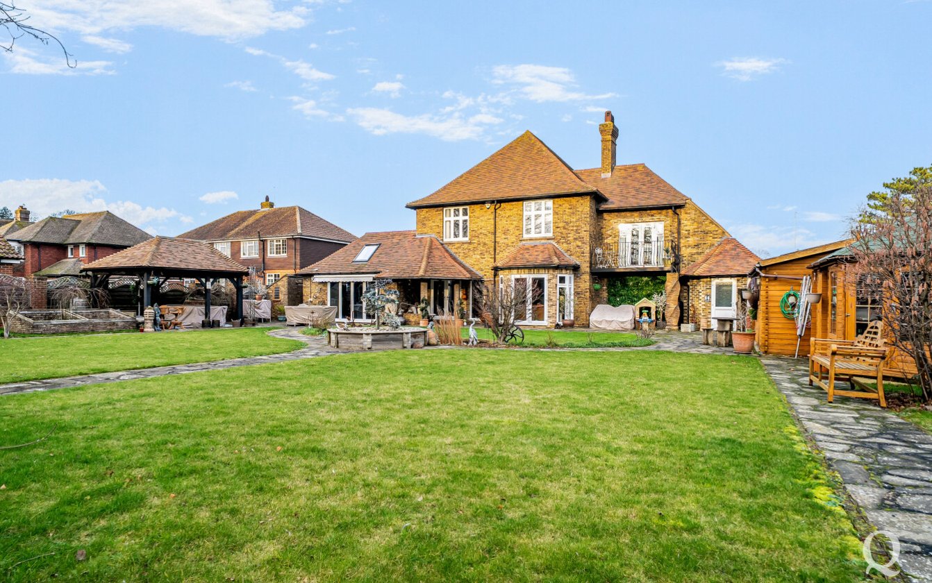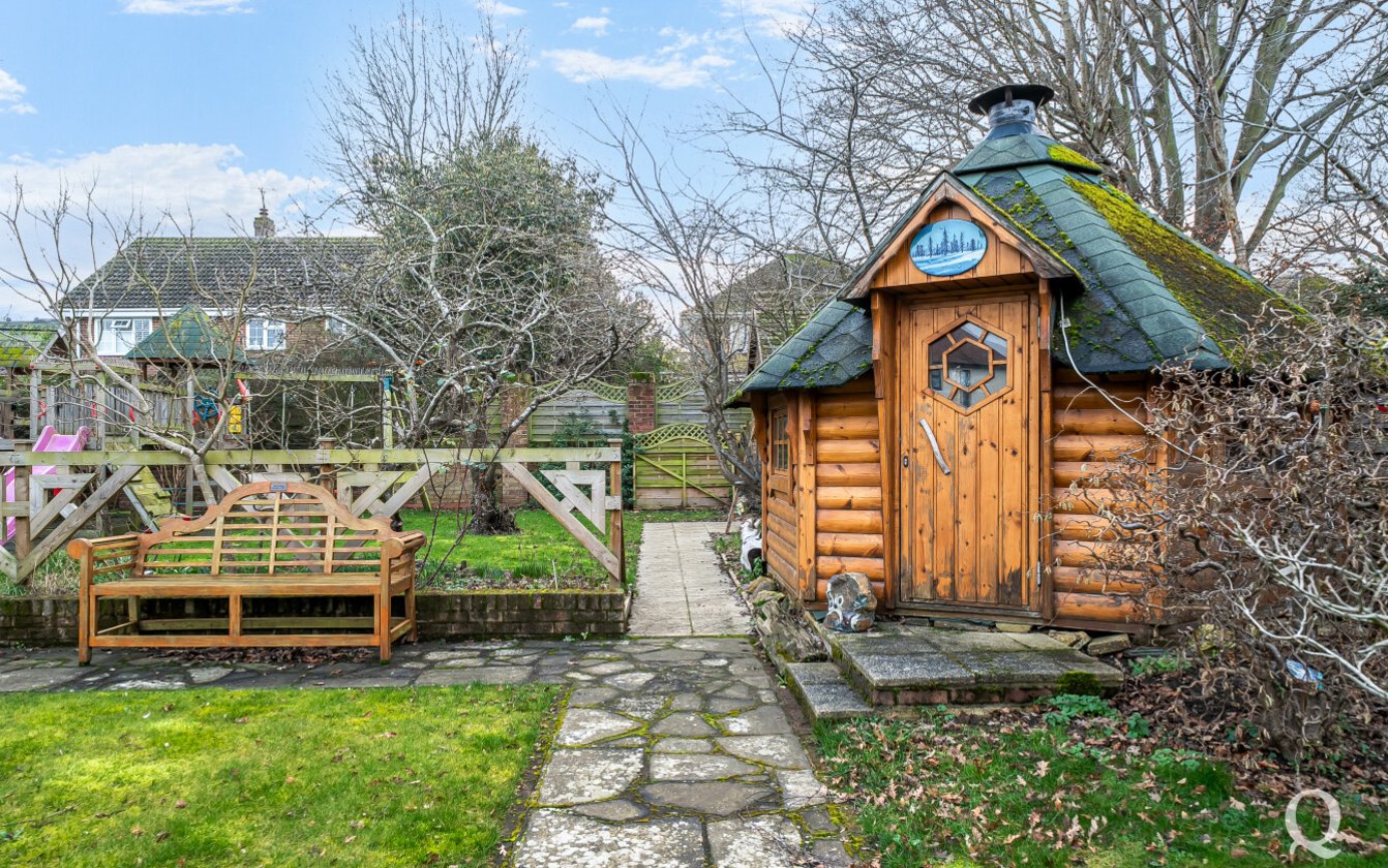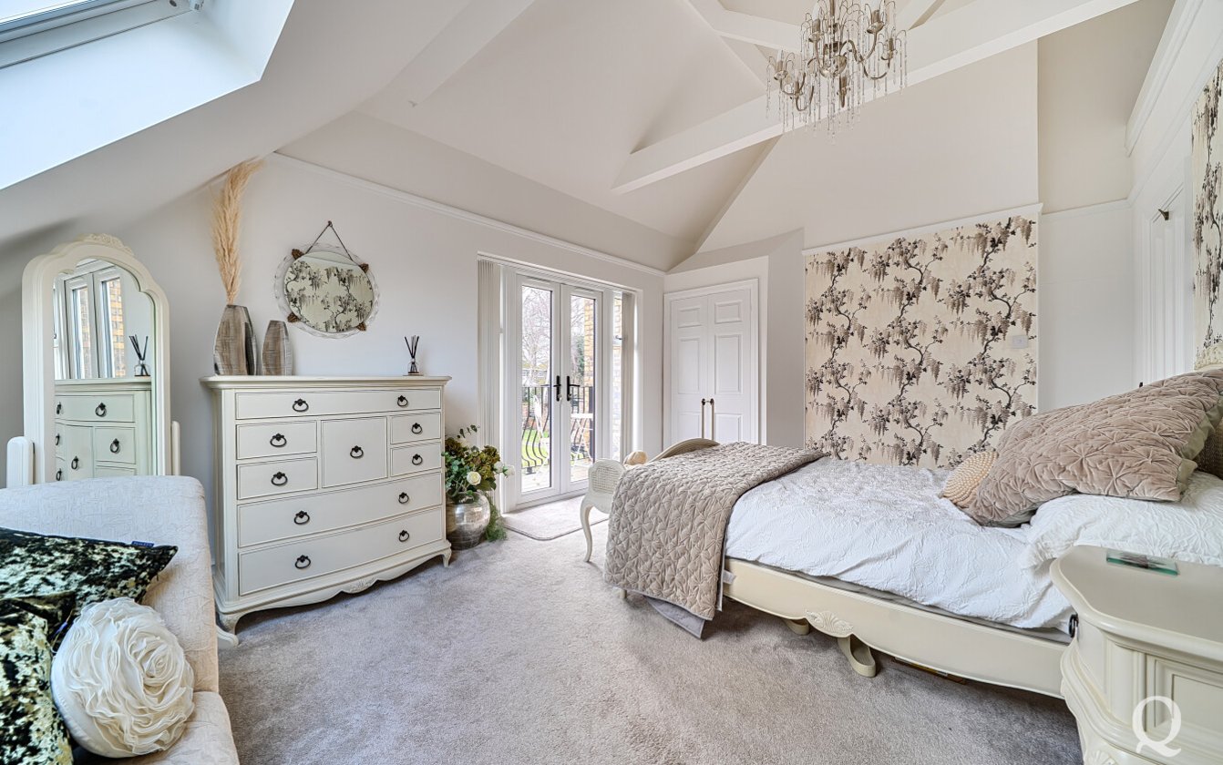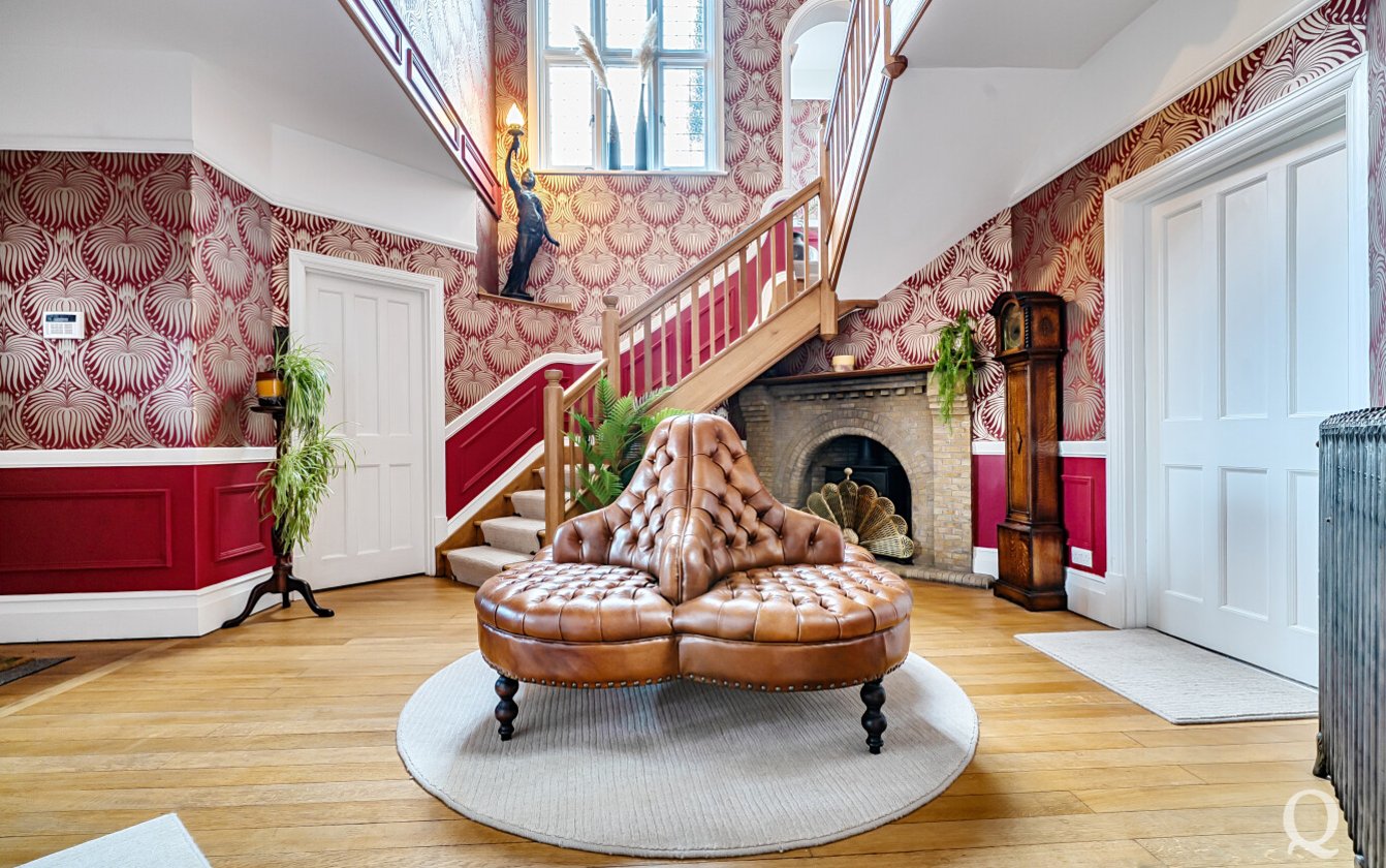 The property is approached through a large and impressive galleried entrance hall, setting the tone for the space and elegance found throughout. From here, a superb front reception room with a replacement wood burner enjoys a large bay window overlooking the frontage, while a separate dining room flows seamlessly into a fabulous modern kitchen, both of which benefit from electric underfloor heating. The kitchen also features solar powered Velux windows and bi-fold doors opening directly onto the rear garden – ideal for both family life and entertaining. A second reception room to the rear benefits from a replacement wood burner and French doors to the garden. A conveniently positioned downstairs WC completes the ground floor. To the first floor, the principal bedroom is located to the front of the house and features a large bay window, a stylish en-suite shower room and a dedicated dressing room. The second bedroom also benefits from its own en-suite shower room and a balcony, while two further generous double bedrooms are served by a spacious family bathroom, fitted with a freestanding bath and a separate shower cubicle. Externally, the property offers an impressive ‘in and out’ driveway providing parking for multiple vehicles, together with a double garage. To the rear is a large, south-facing landscaped garden, thoughtfully arranged and incorporating a range of useful and attractive outbuildings, including a Barbeque Hut Kota, a workshop, store, summer house with additional storage and an outside WC attached to the rear of the garage. This is a truly outstanding home, presented to a very high standard throughout and beautifully in keeping with the age and character of the property, in a highly sought-after location.