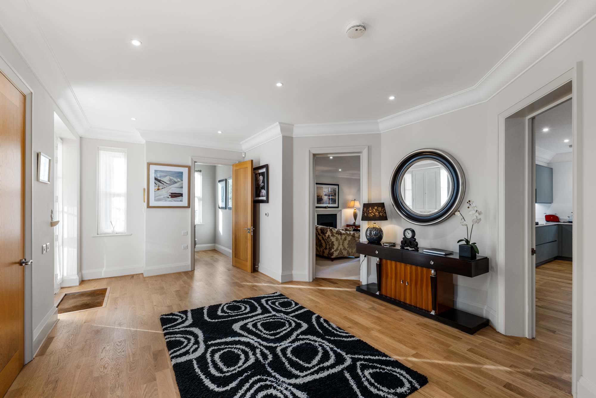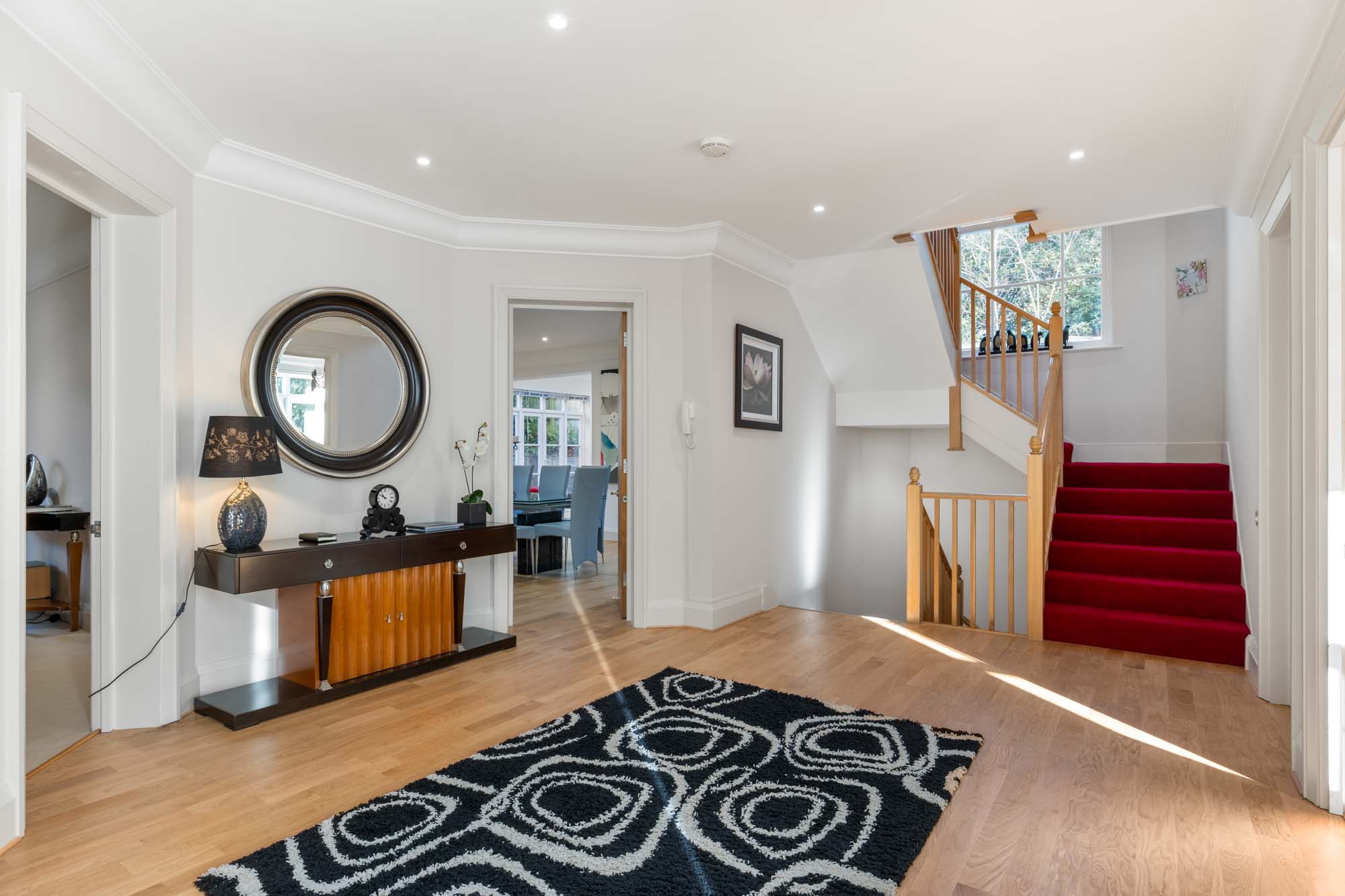 The property is entered through a large central hallway, which seamlessly connects each room on the ground floor and offers a great sense of light and space. The large open plan kitchen provides a central hub for family gatherings and entertaining guests, whilst a separate reception room with gas open fire offers a more cosy space for relaxing and unwinding. The house is ideally located for those seeking accessibility to both London and Reading, with Sunningdale Station just a short distance away. For motorists there is also easy access to the M4, M3 and M25. Furthermore, as well as the many renowned private schools in the area the property also falls into the catchment for the sought after Charters School. This means families can benefit from the many educational opportunities that the area has to offer. The property’s design combines practicality with style, offering a modern interpretation of family living. With its five double bedrooms, ample living space and proximity to the local amenities of Sunningdale and Sunninghill high Street, Windsor Great Park and Virginia Water, this home will appeal to buyers seeking a blend of access to both rural pursuits as well as quick links to the city.
