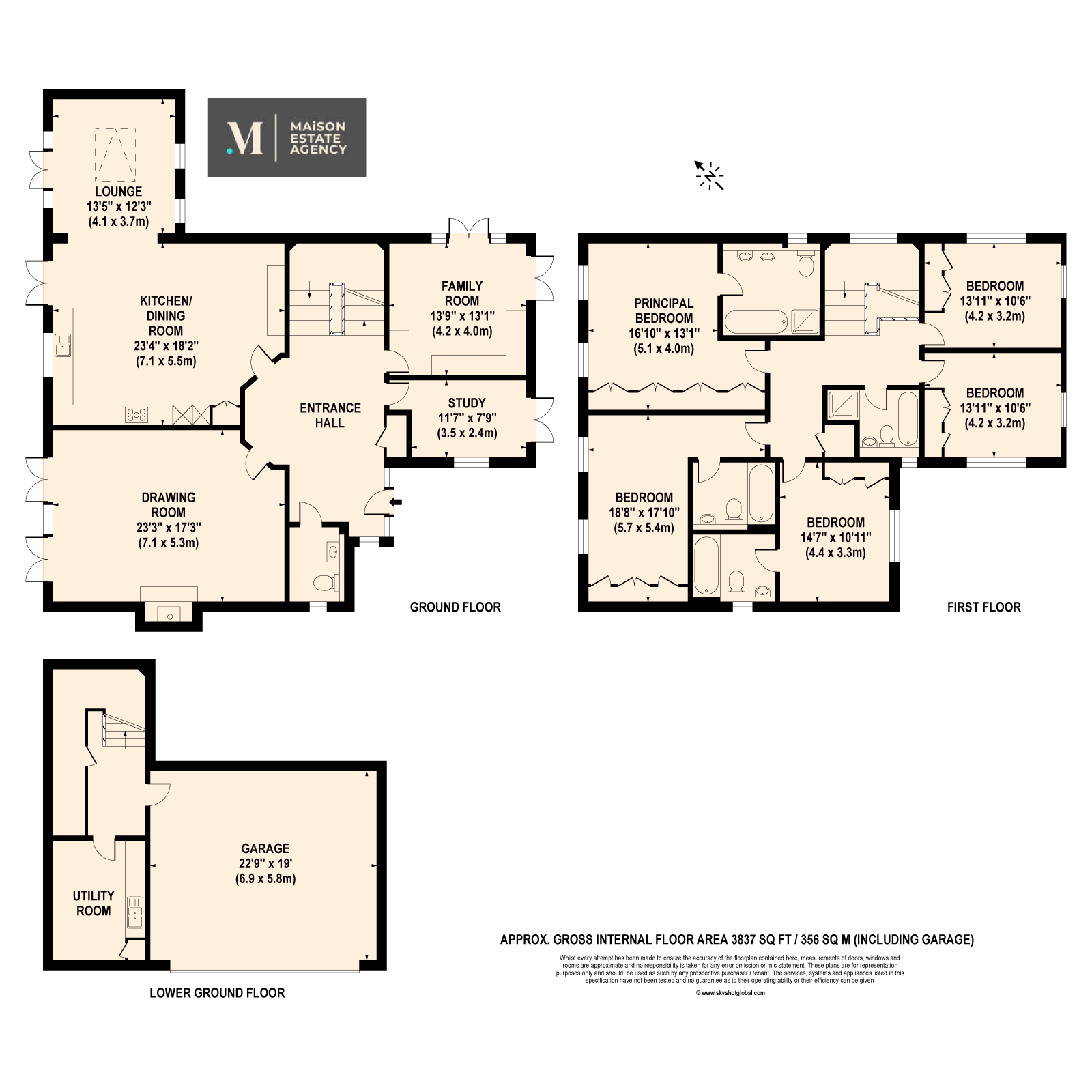 - Five double bedrooms
