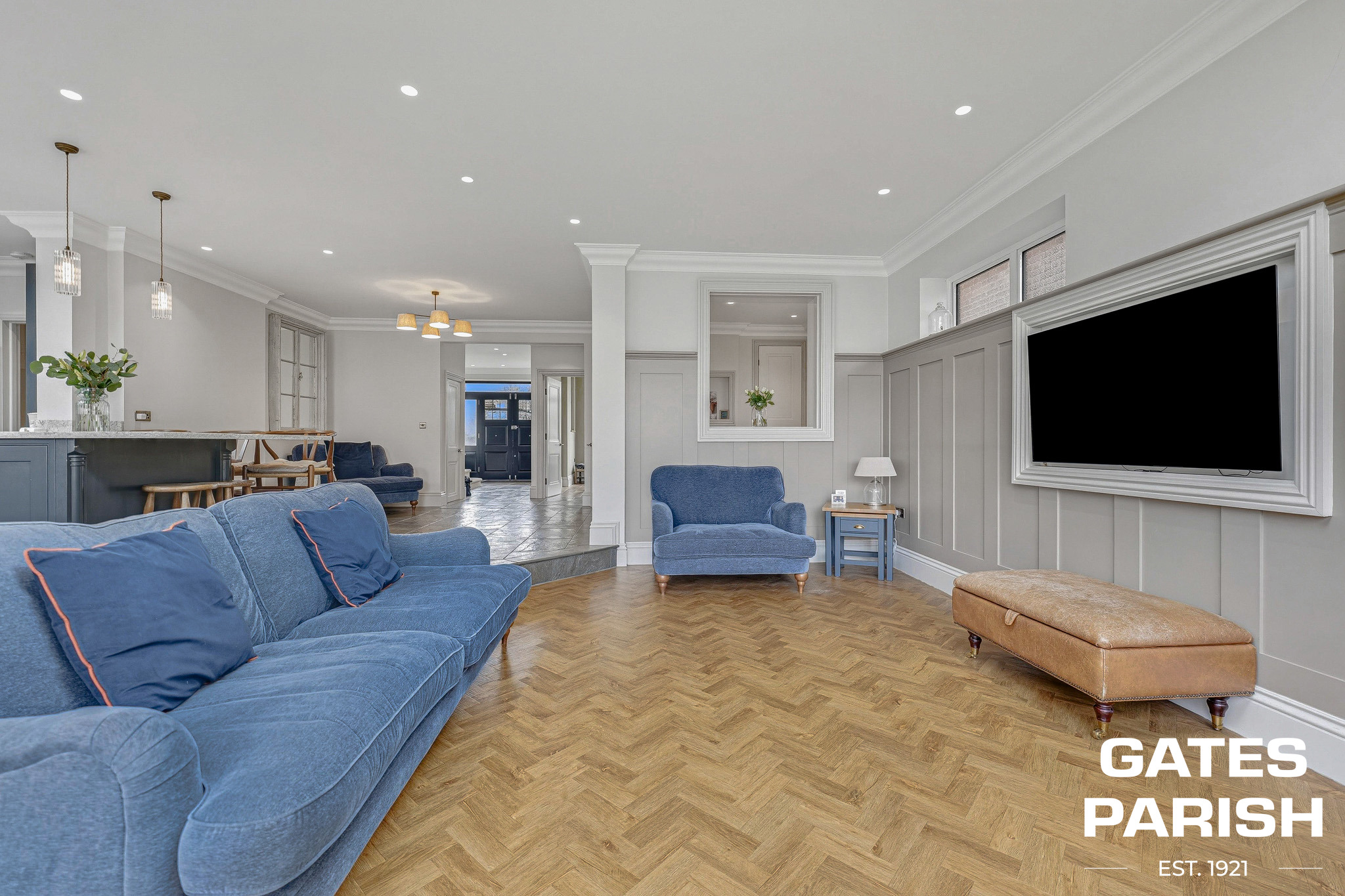 Approached via a private front drive providing off-street parking for three to four vehicles, the home welcomes you through impressive bespoke wooden double front doors. The ground floor benefits from underfloor heating throughout, with each room individually controlled for optimal comfort.