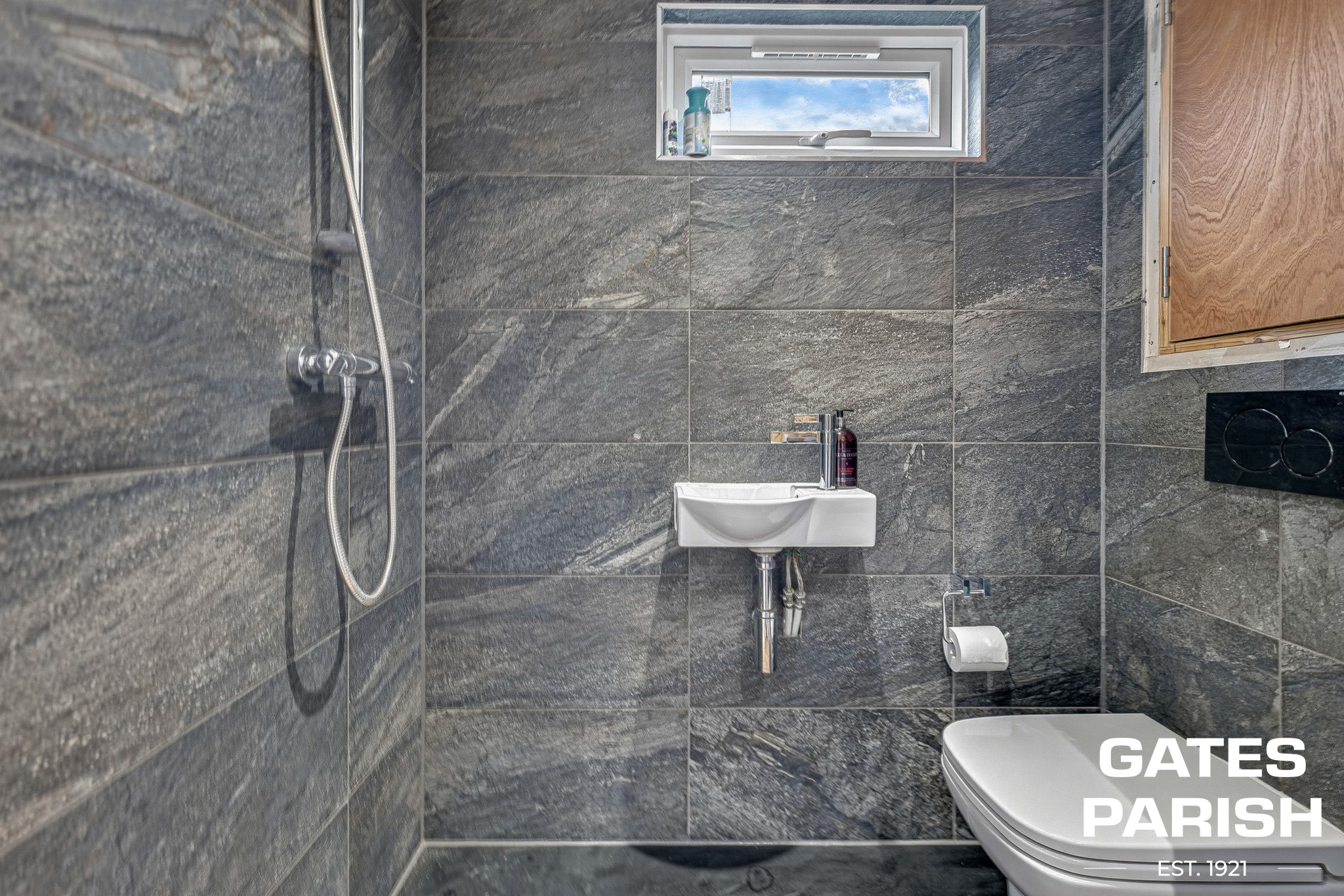 Practicality is equally well considered, with a garage featuring an electric door leading directly into a fully equipped utility room complete with sink, washing machine, tumble dryer, boiler, laundry chute cupboard, mains gas and electric access, stopcock, and an unvented pressurised hot water cylinder. Side gate access provides convenient entry to the rear garden.
