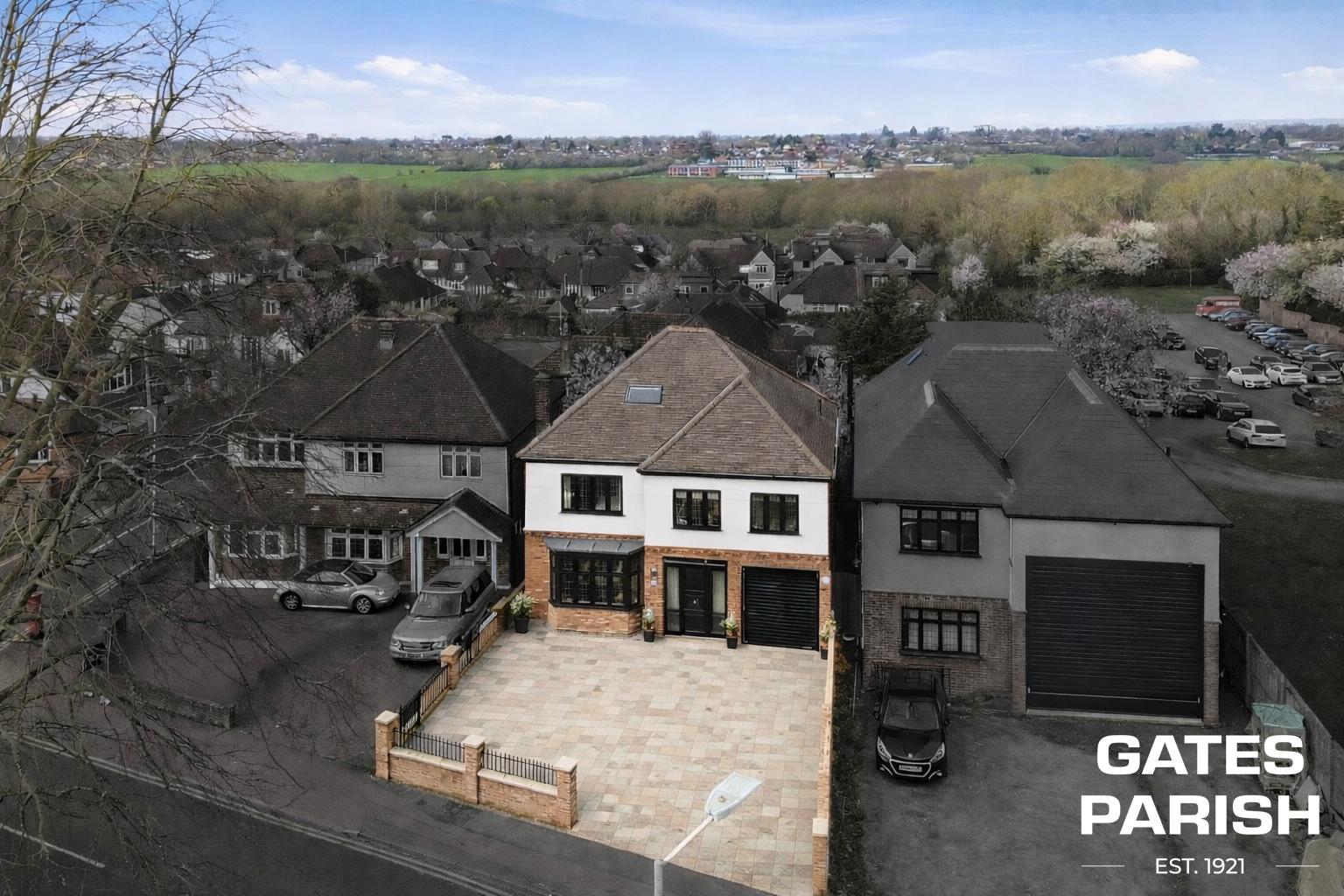Situated on one of Upminster’s most prestigious roads, with a rare position directly opposite Upminster Playing Fields, this exceptional detached residence offers an outstanding blend of bespoke craftsmanship, high-end finishes, and beautifully designed family living space arranged over three floors.