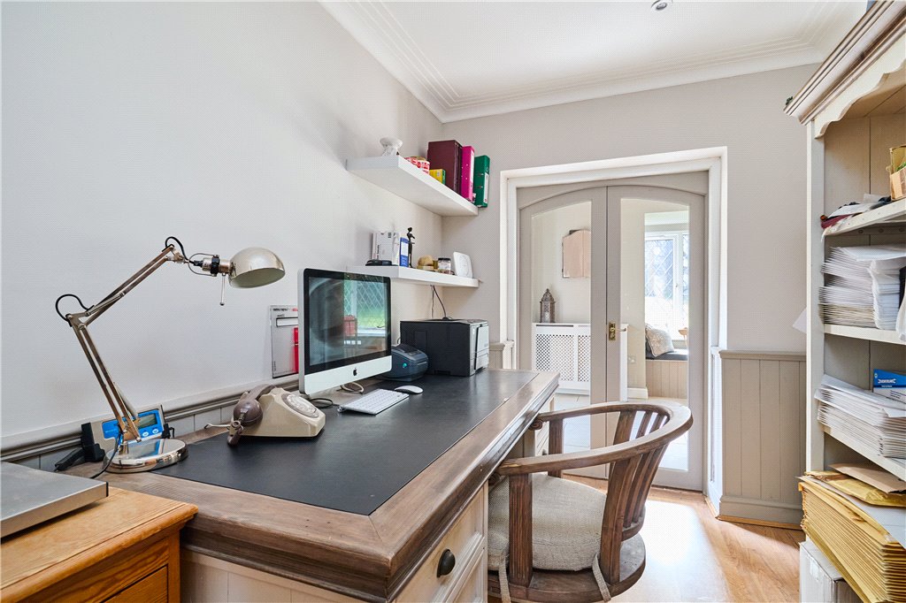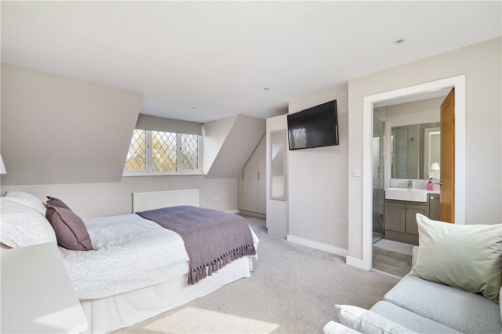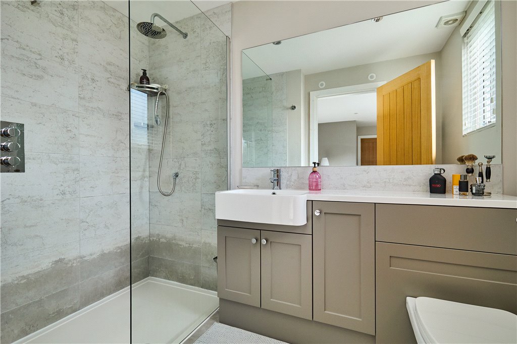On the first floor, the long landing gives access to all the bedrooms. The master bedroom is most generously proportioned, with fitted wardrobes, windows to two elevations and a contemporary en-suite shower room off. The second bedroom also enjoys windows to two elevations, fitted wardrobes and a spacious en-suite. There are three further double bedrooms, two with fitted wardrobes, having use of the house bathroom.