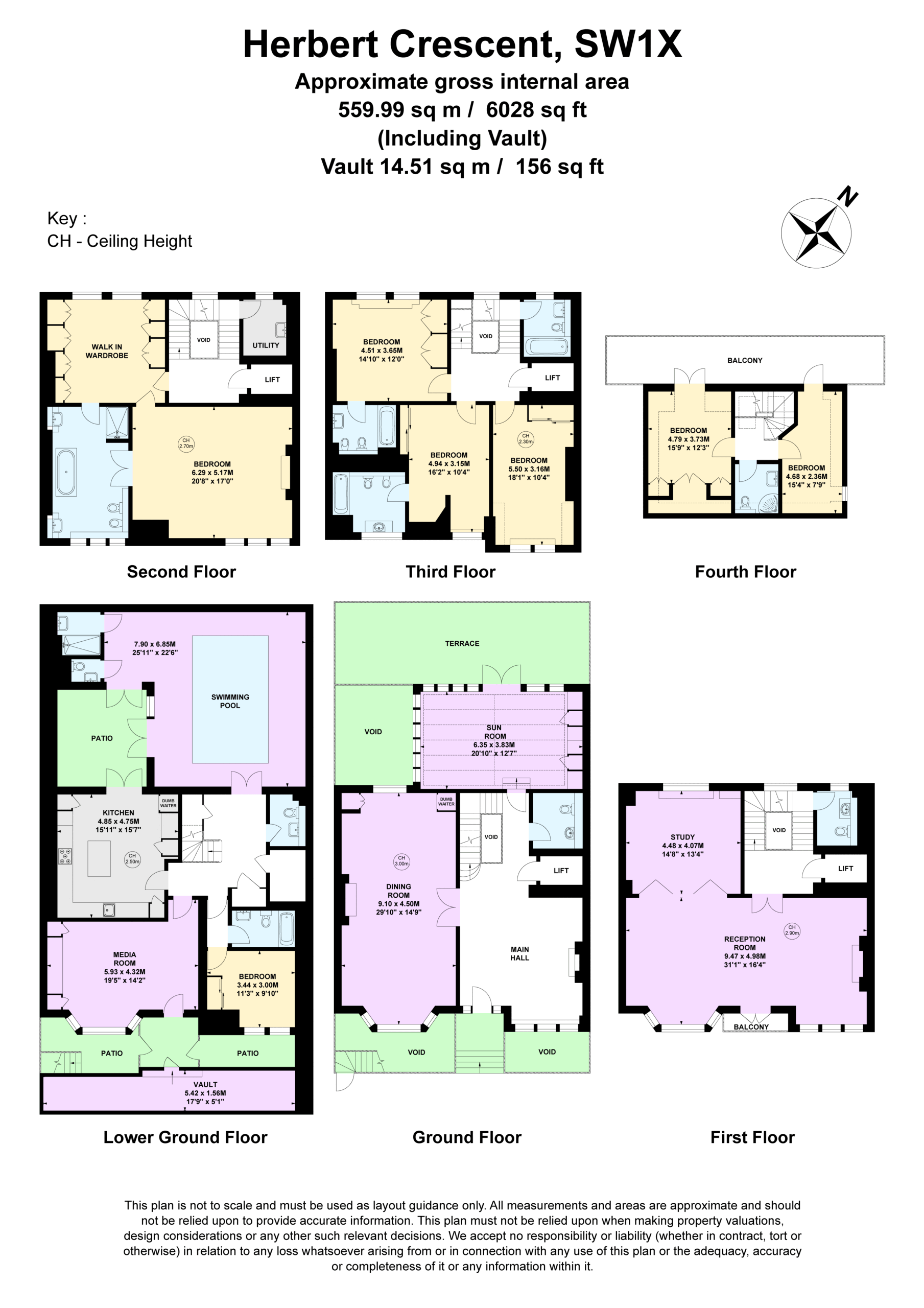Upon entering the house a bright and open entrance hall leads to a dinning hall with access to a conservatory and a patio perfect for summer, located on the lower ground floor is a private indoor pool with own shower room, fully equipped modern kitchen with access to a private patio from pool room and kitchen, as well as one double en-suite bedroom. The first floor leads into a open and bright drawing room and a home office space. Following a beautiful wooden staircase to the master en-suite bedroom with a walk-in dressing room which takes up the whole second floor, as well as a a laundry room few steps down, a further five bedroom are located on the third and fourth floor with a balcony across the house. The house also has a indoor lift which serves all floors as well as a kitchen lift to the dining room.