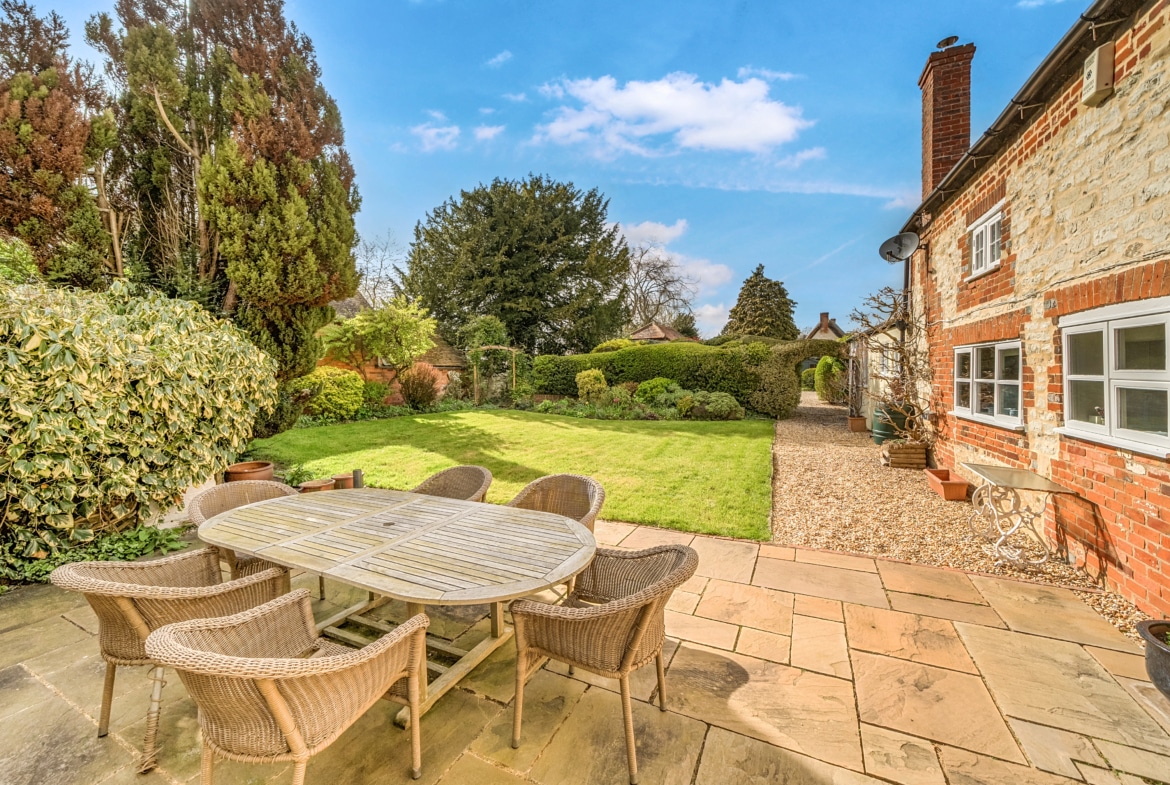 Externally, the gardens are a particular highlight. Thoughtfully arranged and beautifully maintained, they provide a delightful extension of the living space, with areas for outdoor dining, entertaining, or simply enjoying the tranquillity of the surroundings. The blend of mature planting, lawn and patio creates a quintessential English country garden, perfectly complementing the property’s attractive stone and brick façade.