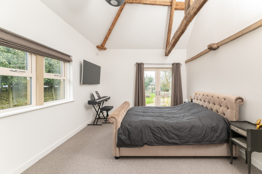 The property boasts an array of character features which include feature fireplaces incorporating multi fuel burning stoves, exposed trusses and beams together with blending the more modern day convenience of under floor heating, sealed unit double glazing, CCTV, and fitted alarm system. The property also benefits from beautiful orangery, high quality kitchen, bathroom and en suite facilities and outstanding views over the valley and Ilkley Moor. The property offers tremendous potential to create annexe or teenage suite for a dependant relative in the detached garage block having previous planning permission in 2018 for the conversion of the first floor of an existing garage building to form a habitable annex space to the main house, including formation of 2 no. dormers. 18/01716/HOU