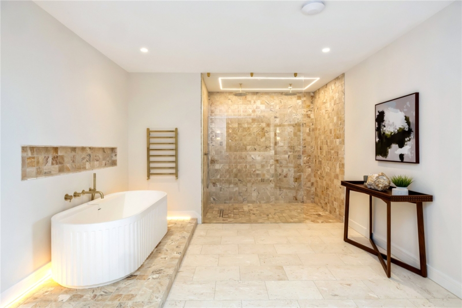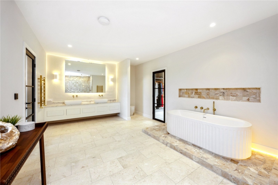 Up on the first floor, the sense of space continues. The principal suite has been thoughtfully arranged, with a large bedroom opening onto a private balcony, a generous dressing room, and a well-appointed en suite. The dressing room, in particular, feels like a real luxury and adds to the sense of this being a private retreat.