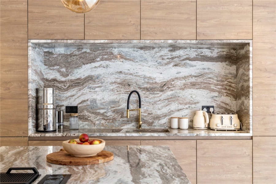 On the ground floor, the layout works beautifully for day-to-day living. A generous entrance hall sits at the centre of the home, creating a natural divide between spaces while still keeping everything connected. To one side, the kitchen and dining room is a real highlight—spanning over 30 feet, it’s a bright, sociable space with a large central island and direct access out to the garden. Just off the kitchen, a separate utility room keeps the practical elements tucked away.