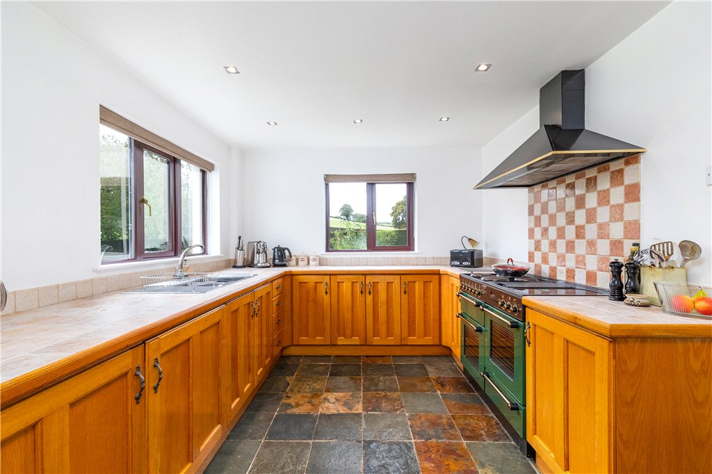 On entering the property to the front elevation through into the entrance hall with tiled flooring and underfloor heating, door leading into the inner hallway with full length window, tiled flooring, useful fitted storage cupboard and staircase up to the first floor. There is the addition of a good sized shower room to the ground floor, comprising of a walk in shower unit with rainfall shower, low flush w.c., fitted wash basin, extractor fan, radiator, integrated washer dryer and electric underfloor heating. Following the property through to the kitchen which offers a range of base and drawer units with work surfaces over, stainless steel sink and drainer, plumbing for a washing machine and dishwasher, Rangemaster cooker, separate larder cupboard allowing for space for a fridge freezer and tiled flooring. Off the kitchen, is the well proportioned dining room with patio doors providing access out to the garden, Esse multifuel stove set in a stone fireplace, two useful understairs cupboards and tiled flooring. Continuing from the dining room down to the living room, which is again of a great size, includes double patio doors leading out to the front of the property, solid oak flooring and multi fuel stove set within a modern fireplace and surround. Off the living room, there is access to the second sitting room on this floor, with double patio doors offering access to the front of the property, tiled flooring and radiator. Also to the ground floor is access through into the integral double garage which includes power, lighting and water facilities with electric remote controlled roller door. Through from the garage, is a separate office space which provides for a great working from home space, with radiator and fitted storage cupboard.