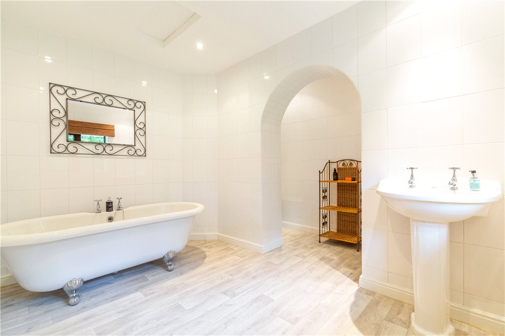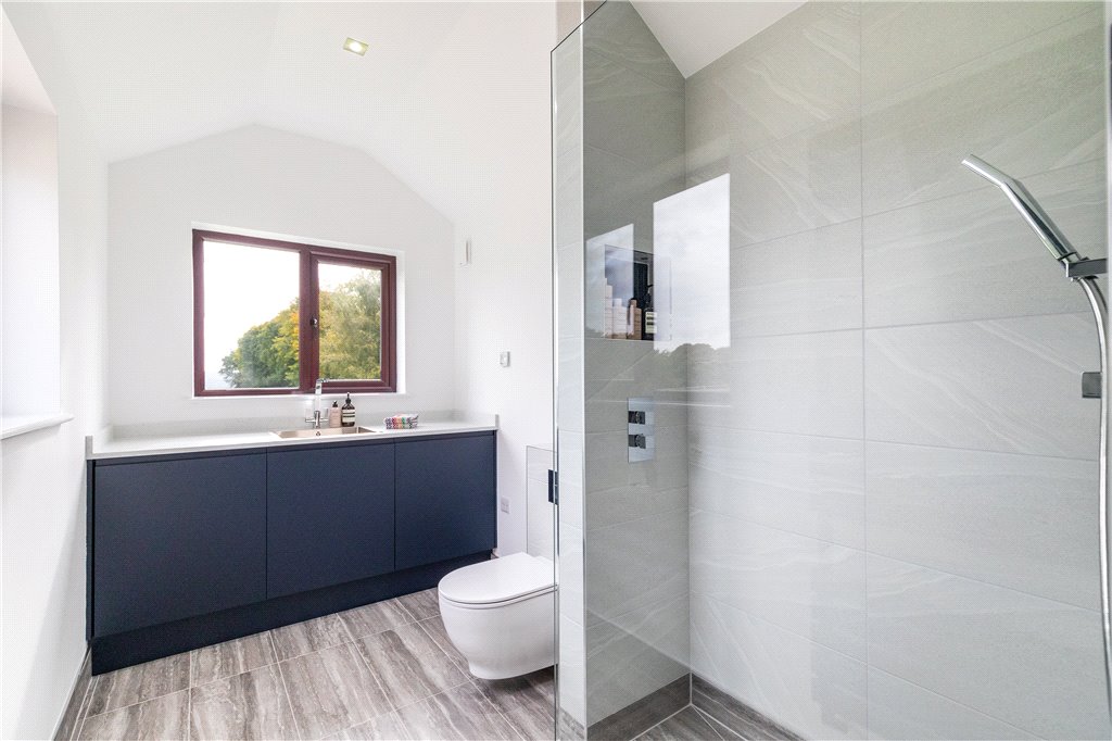 To the first floor, the light and spacious landing offers access to four bedrooms which are all of a great size. The master bedroom is located to the rear of the property, with en-suite facilities, comprising of a rolltop claw foot stand-alone bath, pedestal wash basin, low flush w.c., enclosed shower unit, vinyl flooring and radiator. Also to this floor is the house shower room, with walk in shower unit, wash basin with vanity cupboard below, low flush w.c., electric underfloor heating, heated mirror and radiator. To the far side of the property are the final two bedrooms accessed via the staircase next to the second sitting room on the ground floor. Both of these bedrooms provide good sized accommodation with Velux windows allowing for an abundance of natural lighting and an array of eaves storage.