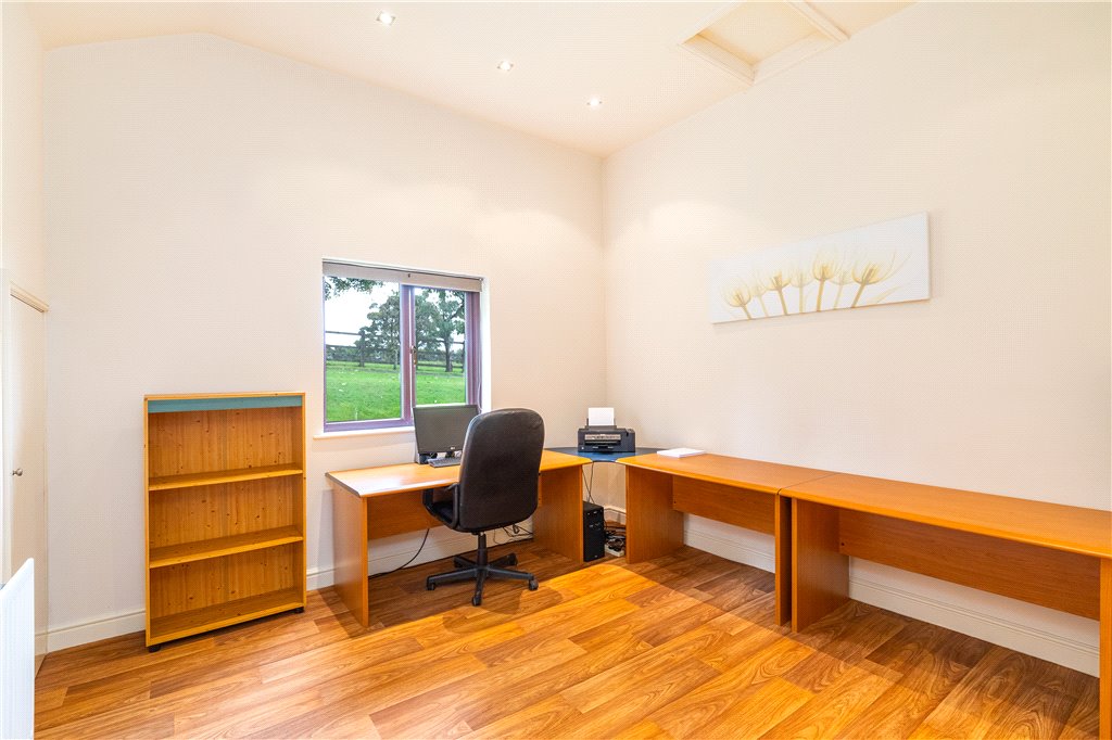 The property sits within approximately 1.825 acres of land, incorporating manicured lawns with mature trees and stone wall borders, private driveway leading to a turning circle and ample parking area. In addition to this, there are three stables (one double and two single) all with power and lighting, and an acre paddock ideal for equestrian use. At the rear of the property there is a log store and the oil tank.