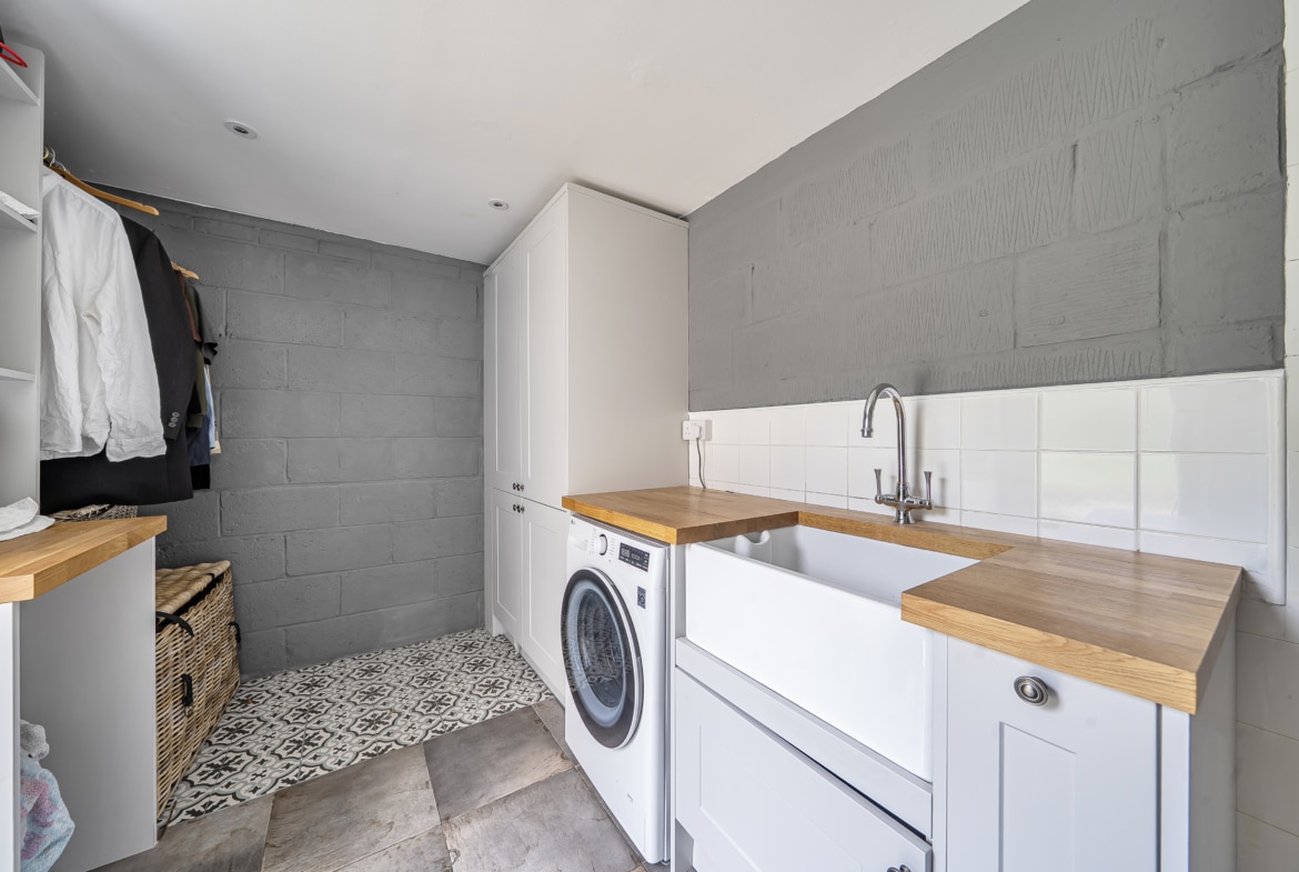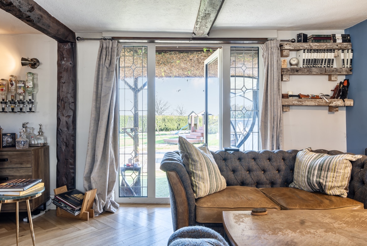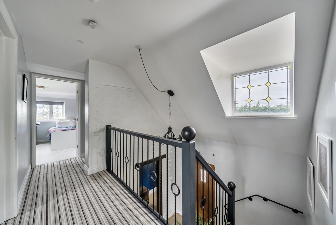 Stepping through the front door, you are greeted by a striking reception hallway with a gallery landing above, setting an immediate tone of space and character. The substantial triple-aspect living room is bathed in natural light and features a charming cast iron burner. There is also a “secret” snug, privately positioned and complete with an open fireplace and patio doors leading out to a covered sun terrace, providing an inviting setting for relaxed evenings. The newly installed kitchen/breakfast room flows seamlessly into a conservatory/dining area, while a separate utility room and cloakroom complete the ground floor accommodation.