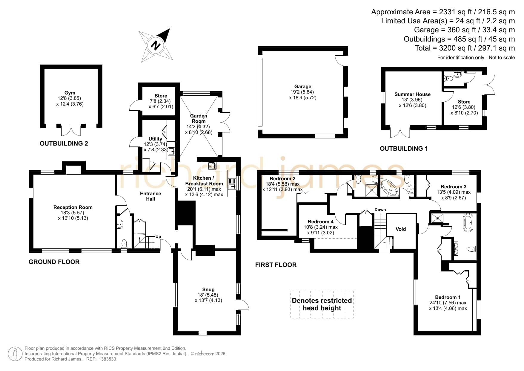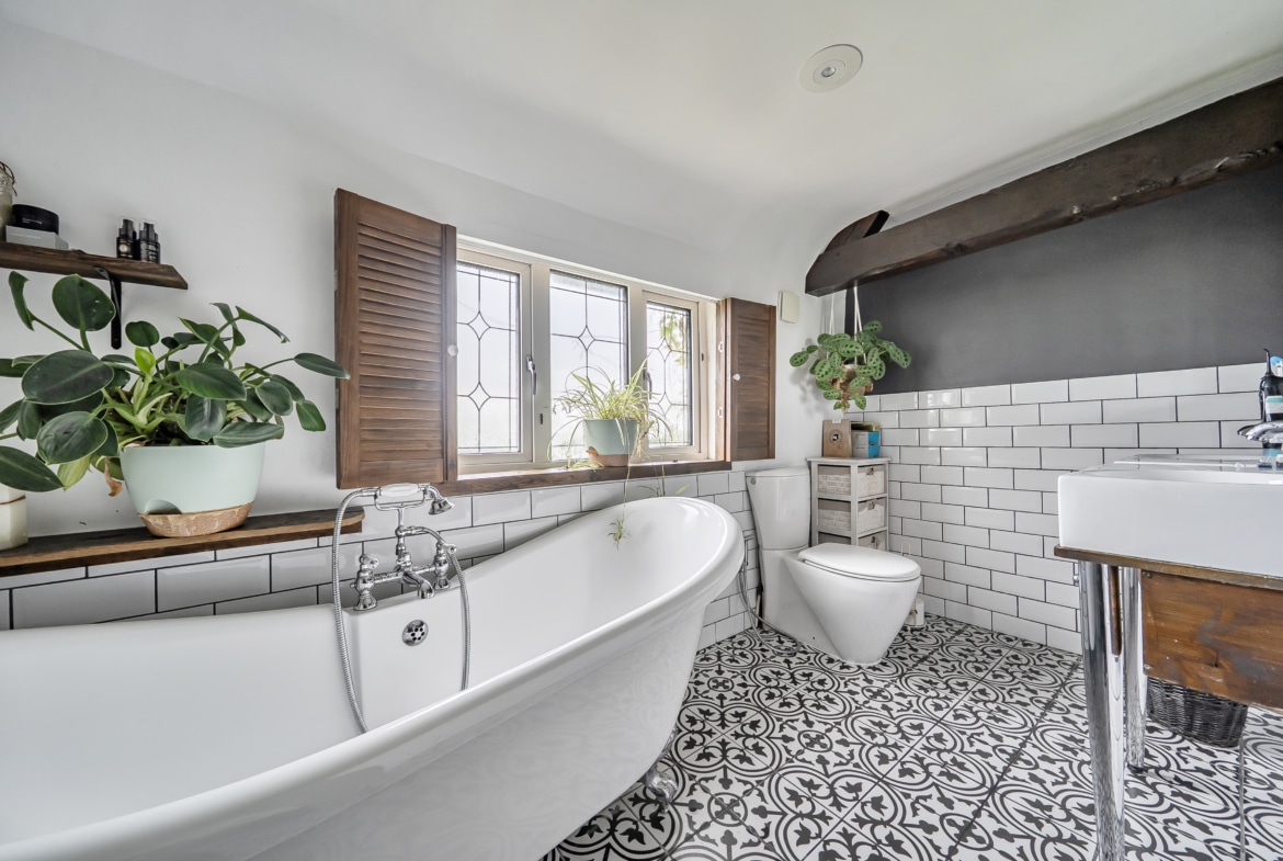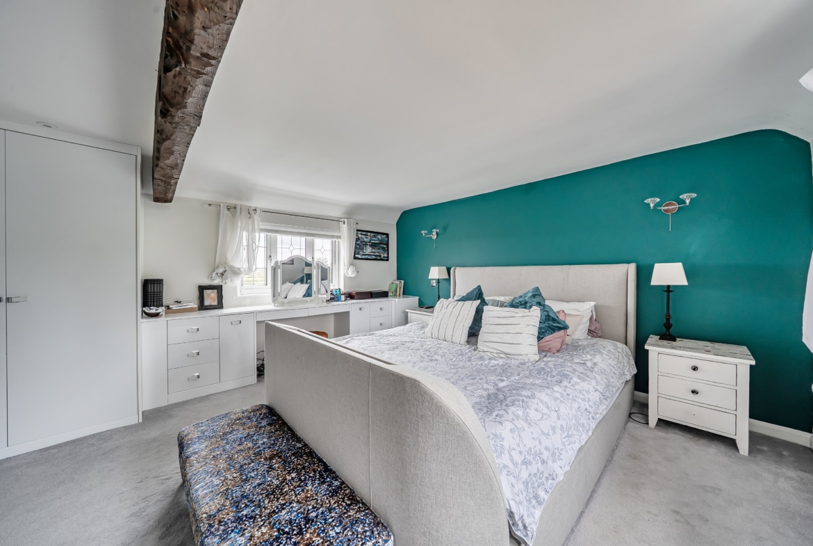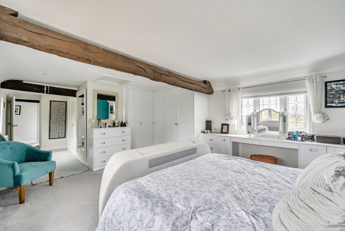 On the first floor, the principal bedroom is beautifully positioned at the rear of the property to take full advantage of the stunning countryside views. It is enhanced by a dressing area with built-in wardrobes and an impressive en-suite bathroom featuring a walk-in shower, freestanding roll-top bath, WC and twin sinks. The second bedroom also enjoys the benefit of a dressing area with built-in wardrobes and its own en-suite shower room. Two further well-proportioned bedrooms and a family bathroom complete the upper floor.