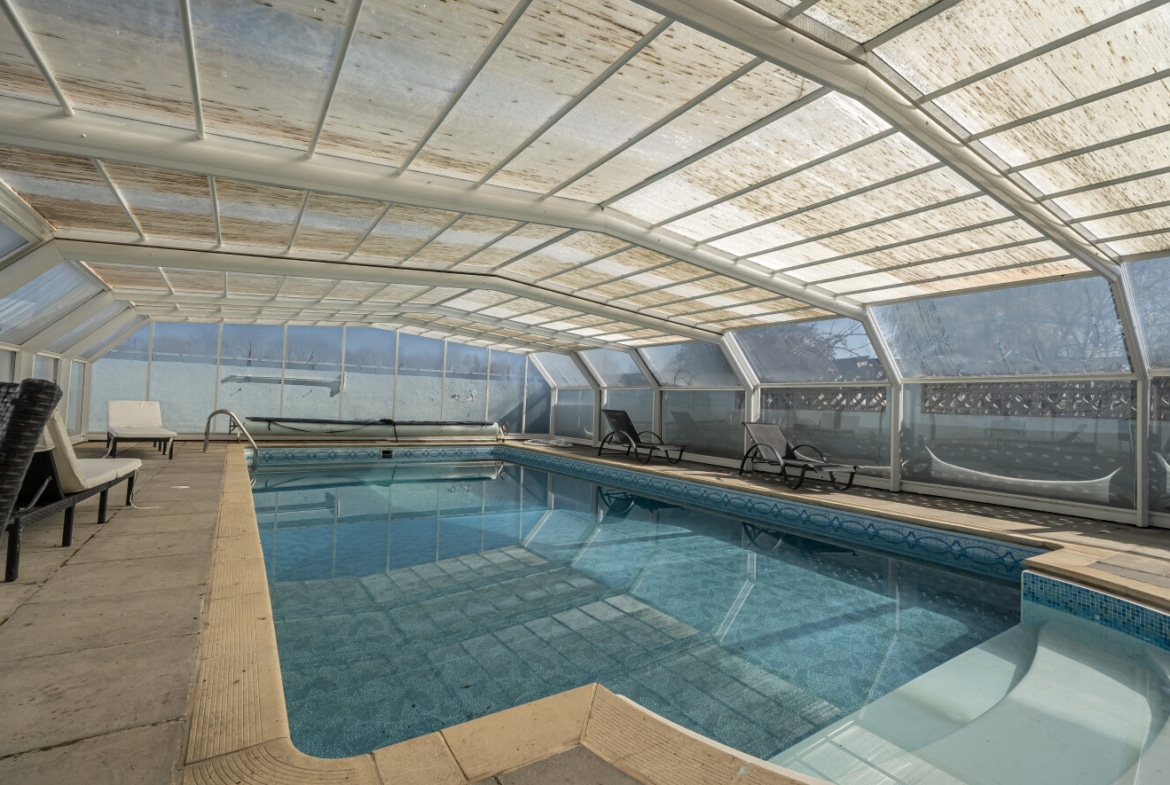 Externally, the property continues to impress. The grounds include established gardens, open land, and a range of outbuildings. A particular highlight is the covered, heated swimming pool, complete with a retractable roof, allowing for year-round enjoyment.