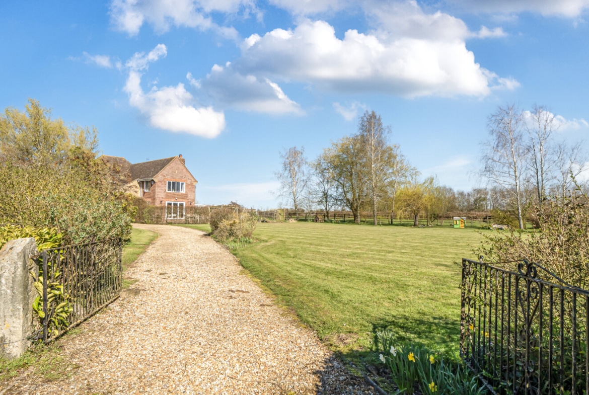 Approached via a long private driveway, the property immediately conveys a sense of exclusivity and tranquillity. The setting is truly special, enjoying uninterrupted views stretching towards the Ridgeway and the Marlborough Downs, creating a picturesque backdrop.