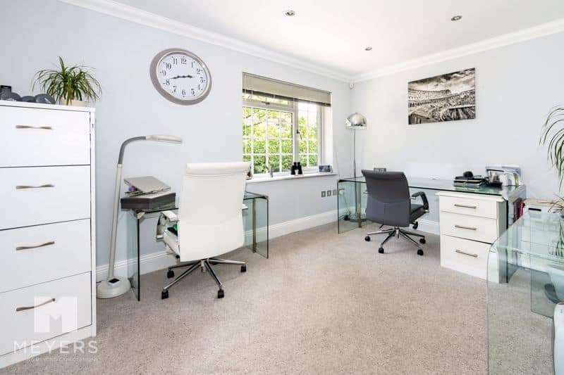 The separate study is also located off the hallway via a part glazed internal door and has ample room for two desks and furniture and enjoys a peaceful aspect over the side elevation.