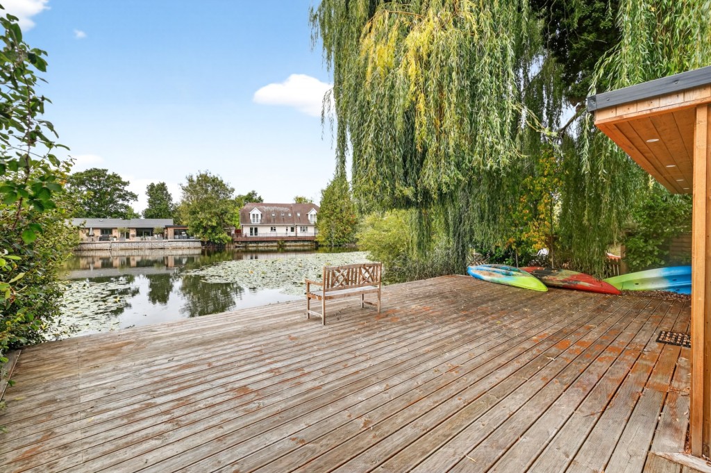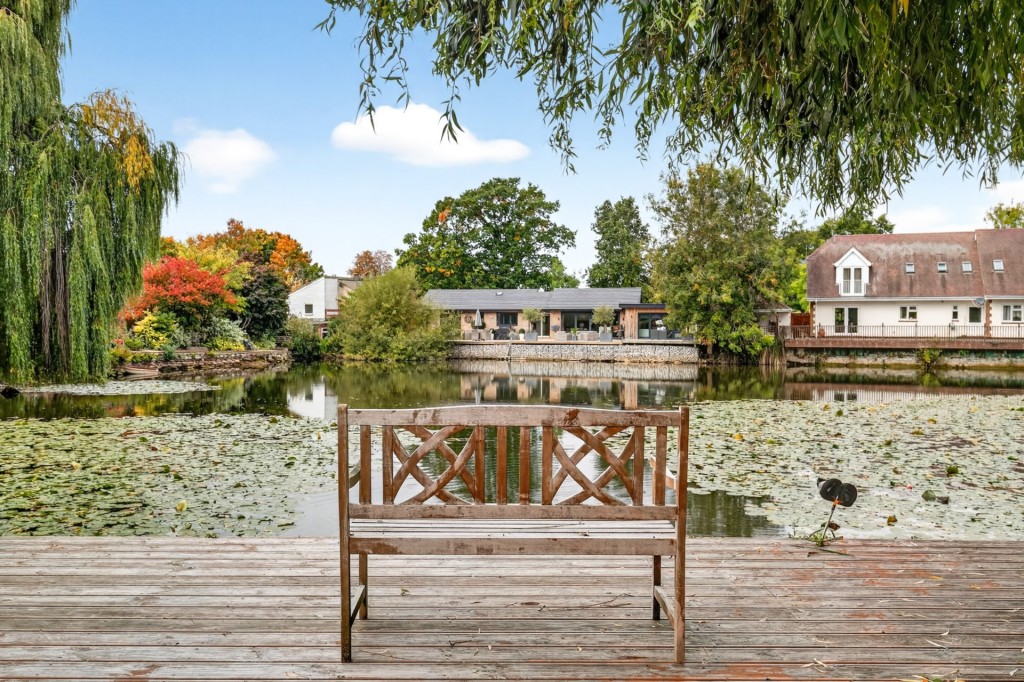 Outside, the property continues to impress. The expansive garden is a true sanctuary, featuring a golf simulator area, a tranquil pond, and a gym/home office—perfect for those seeking a balanced lifestyle. A large decking area provides an idyllic setting for outdoor relaxation or fishing directly in the lake, offering a truly unique lifestyle opportunity.