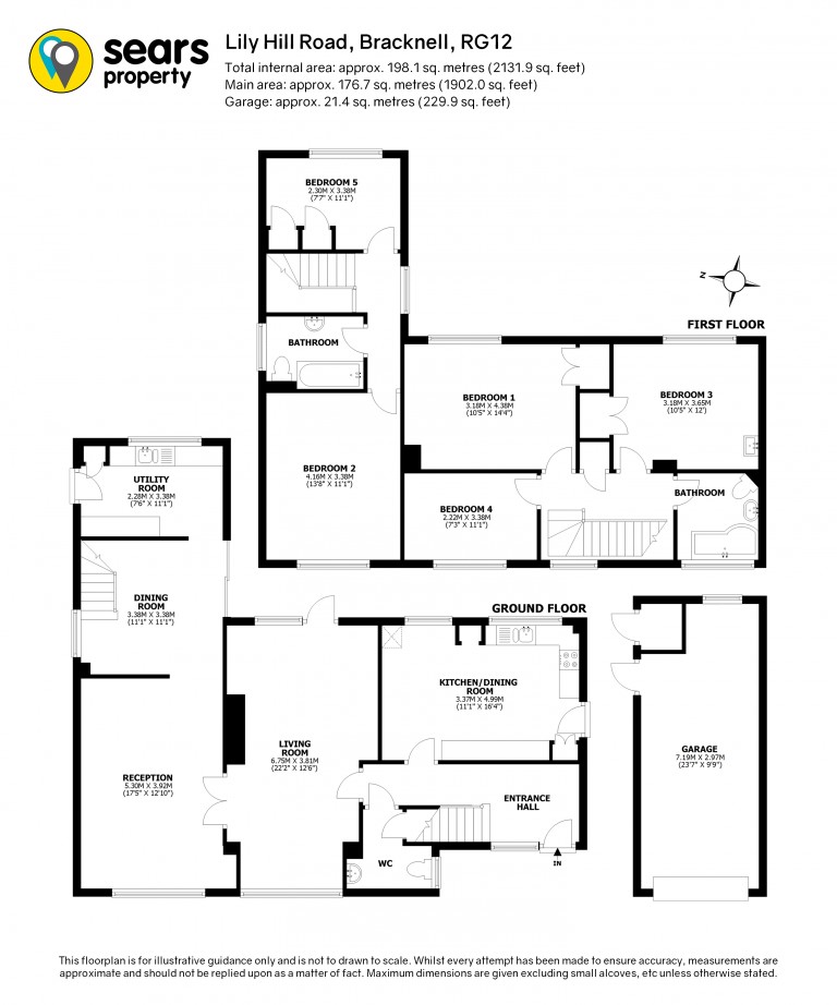 The internal set up includes:- 16ft kitchen/breakfast room, 22ft living room, 11ft dining room, 17ft family room, downstairs cloakroom, utility room, five good sized bedrooms and two family bathrooms.