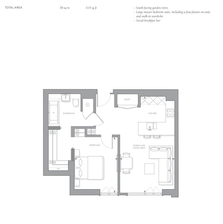 Stunning Development | Huge One Bedroom | 619 sq ft (57.5 Sq M) | Seventh Floor | 17,000 sq ft of Amenity Space | 24 hour Security and Concierge | Vitality Pool | Ice and Mist showers | Sauna & Steam Room | Gymnasium | Club Room, Library & Snooker Room | 6,000 sq ft of Private Landscaped Gardens | 24 Person Private Cinema | Private Training and Treatment Rooms