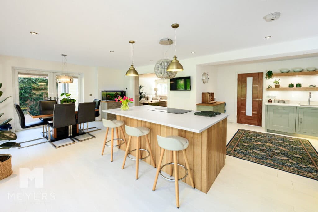 Undoubtedly the heart of the home, the kitchen/dining space is both impressive in scale and exceptional in finish. Flooded with natural light from expansive bi-fold doors opening onto the rear garden and additional French doors to the side patio, it offers a seamless connection between indoor and outdoor living.