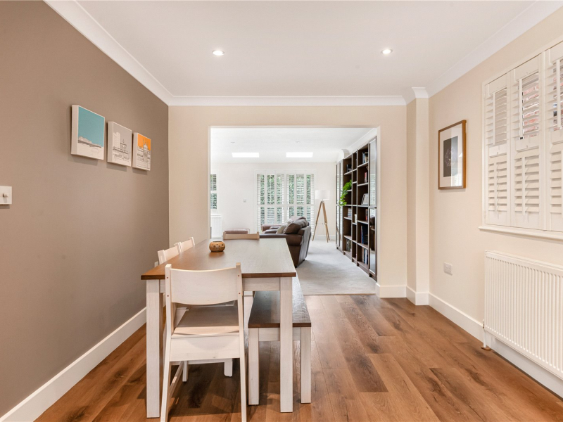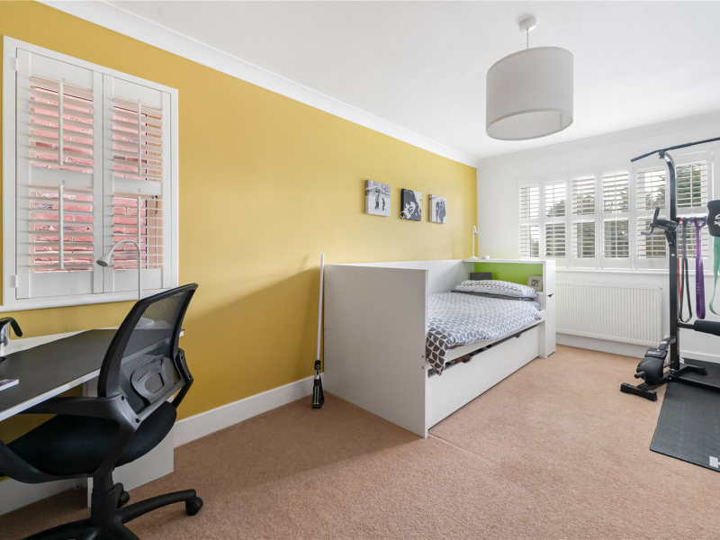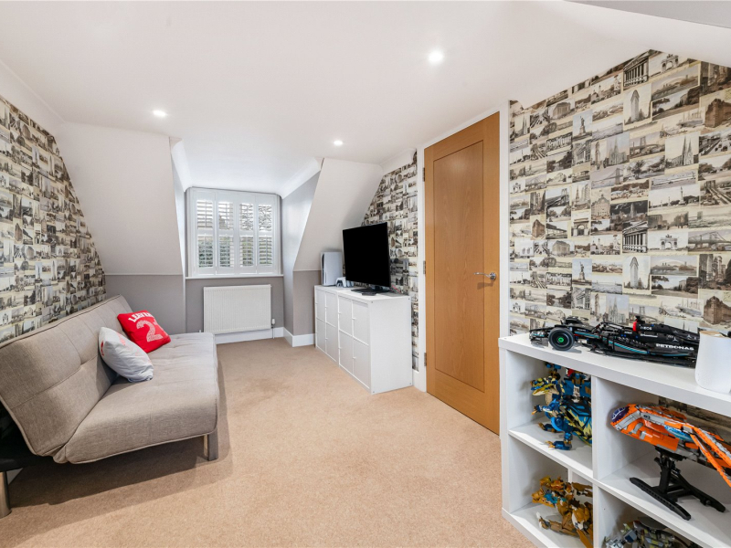 The top floor is dedicated to the impressive principal bedroom, which features a spacious en-suite and ample room for freestanding furniture, along with large built-in wardrobes for added convenience.