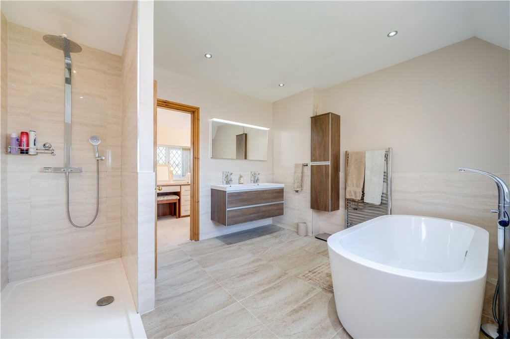 The first floor continues to impress with a superb principal suite, generously proportioned and complemented by its own dressing room and private bathroom, creating a luxurious retreat within the home. Two further well-proportioned double bedrooms complete the accommodation on this level and are served by the house bathroom, offering ample space for family and guests.