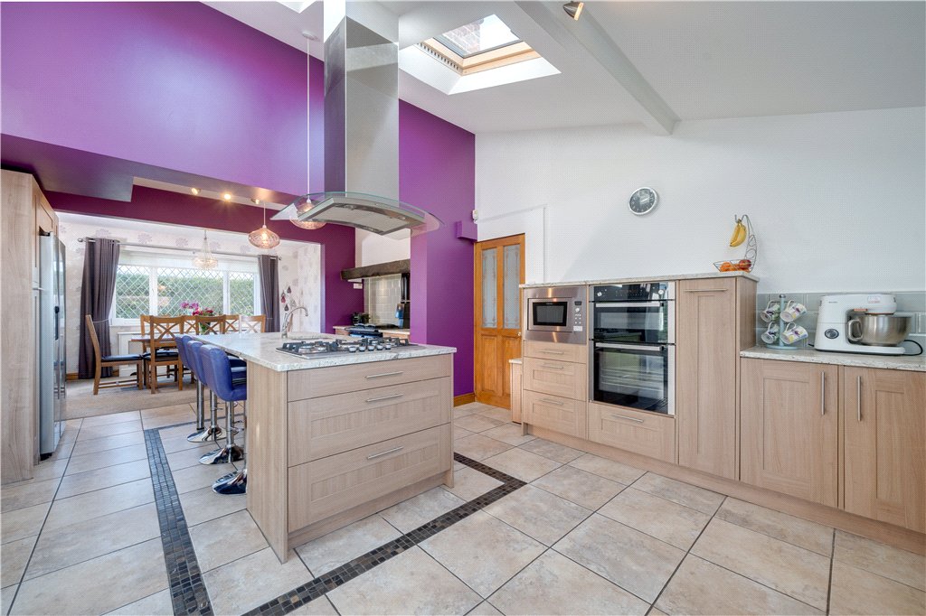 At the heart of the home lies a magnificent family kitchen and dining space, a wonderfully expansive area perfectly suited to everyday family life as well as entertaining on a larger scale. Thoughtfully arranged and flooded with natural light, this sociable hub flows effortlessly through to the impressive living room, a larger-than-average reception space enjoying delightful views across the rear garden and providing the perfect setting for relaxation and gatherings alike.