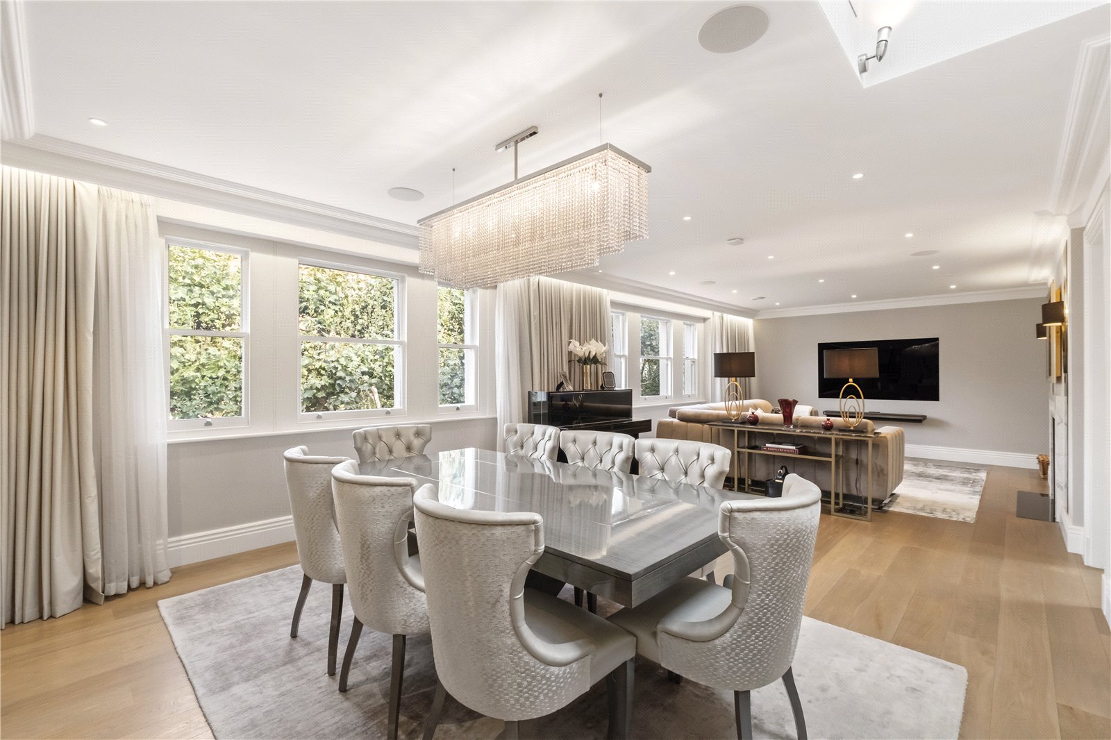 The dining room offers an elegant space for entertaining, while the generous living room area provides comfort and sophistication in equal measure.