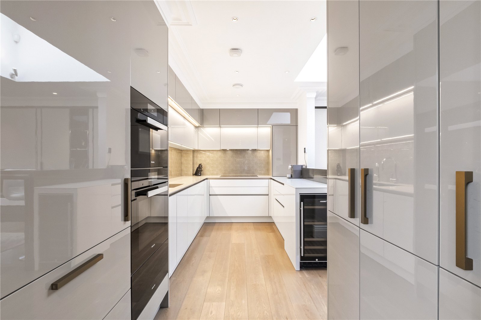 This penthouse benefits from underfloor heating throughout and is offered fully furnished, with top-of-the-line kitchenware and designer furniture included.