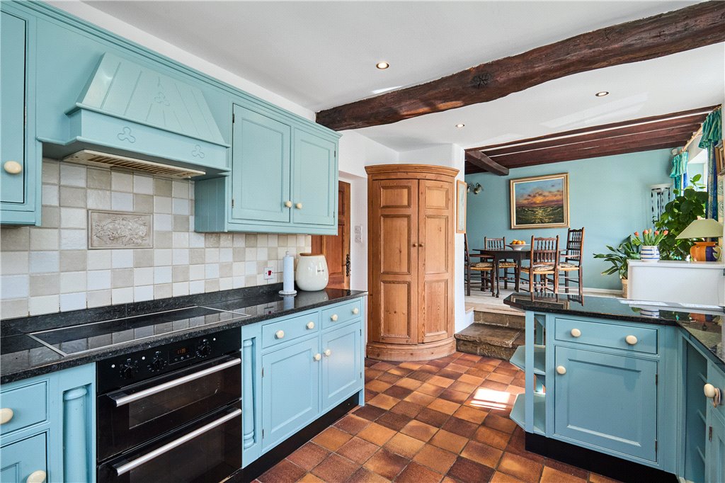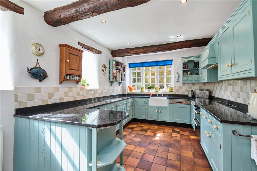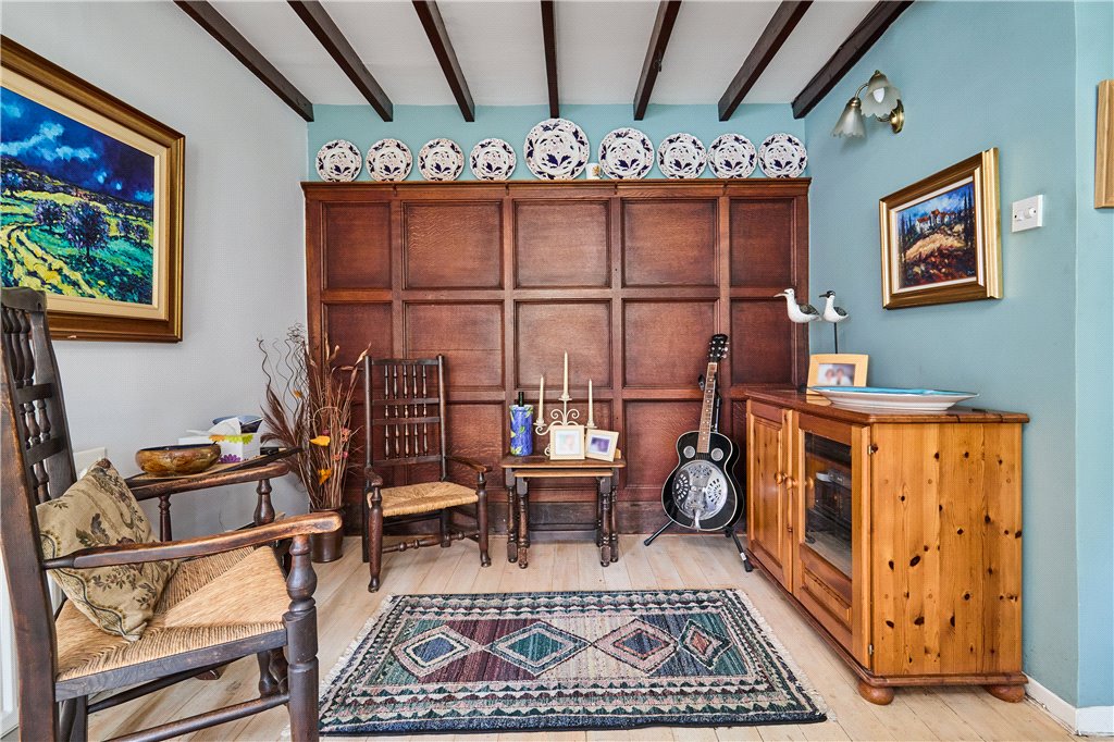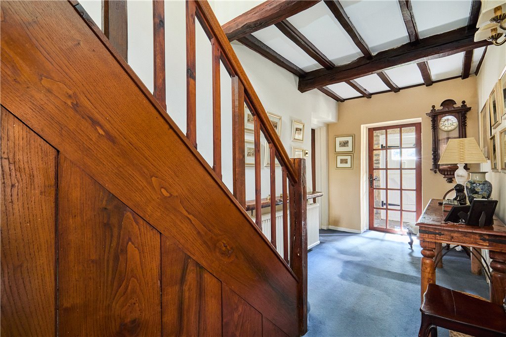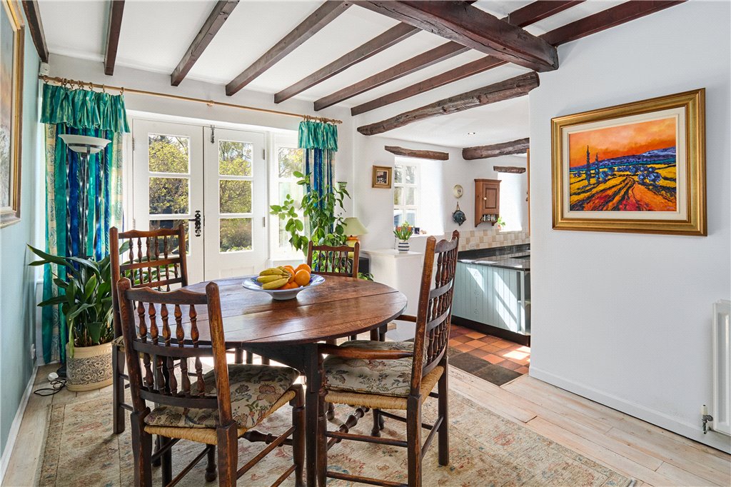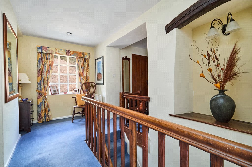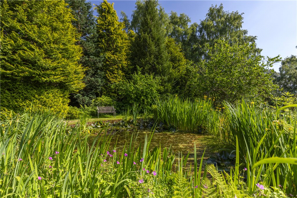 Dean Farm overlooks beautiful well stocked gardens, a haven for wildlife and the green fingered. The plot is stocked with mature specimen trees, whilst shrubs, sweeping lawns and an ornamental pond add interest at almost every turn. The house has the advantage of expansive parking, and beyond the gardens, as the land runs up The Dean, one will find a greenhouse adjacent to the house, a vegetable and fruit garden.