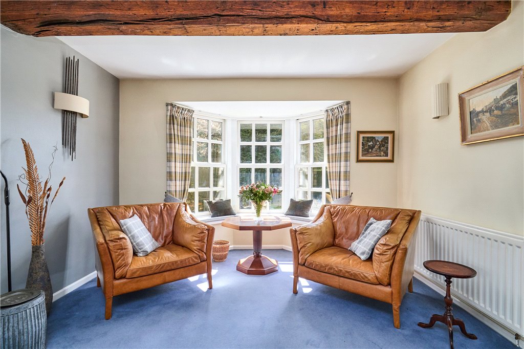 Ground Floor: Entrance Porch; Reception Hall with staircase off and storage beneath; Cloakroom; Living Room – a lovely dual aspect reception room with splay Bay overlooking the principal gardens, French doors to the side terrace and an open fire; Family Room with lovely garden views; Dining Area, again with French doors to the fore garden; Kitchen fitted with a comprehensive range of integrated storage. There is direct access from the kitchen to the property's integral garage offering clear potential for extension of the principal living – subject to any consent. Pantry; Laundry with fitted storage cupboards.