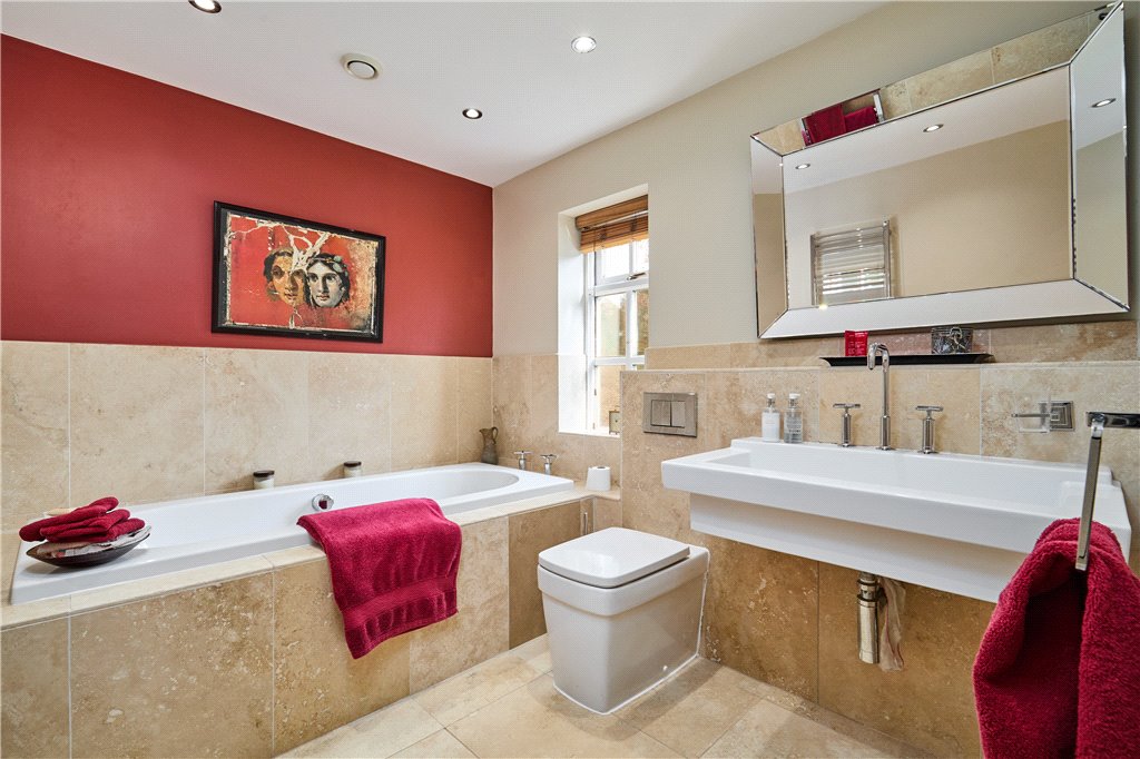 First Floor: Generous split level Landing; Principal Bedroom Suite comprising a triple aspect Double Bedroom with fitted wardrobes and luxury Ensuite Bathroom off with both bath and shower; Washroom WC; three further Double Bedrooms including one with a range of fitted wardrobes; Single Bedroom five/Study; well-appointed House Bathroom.
