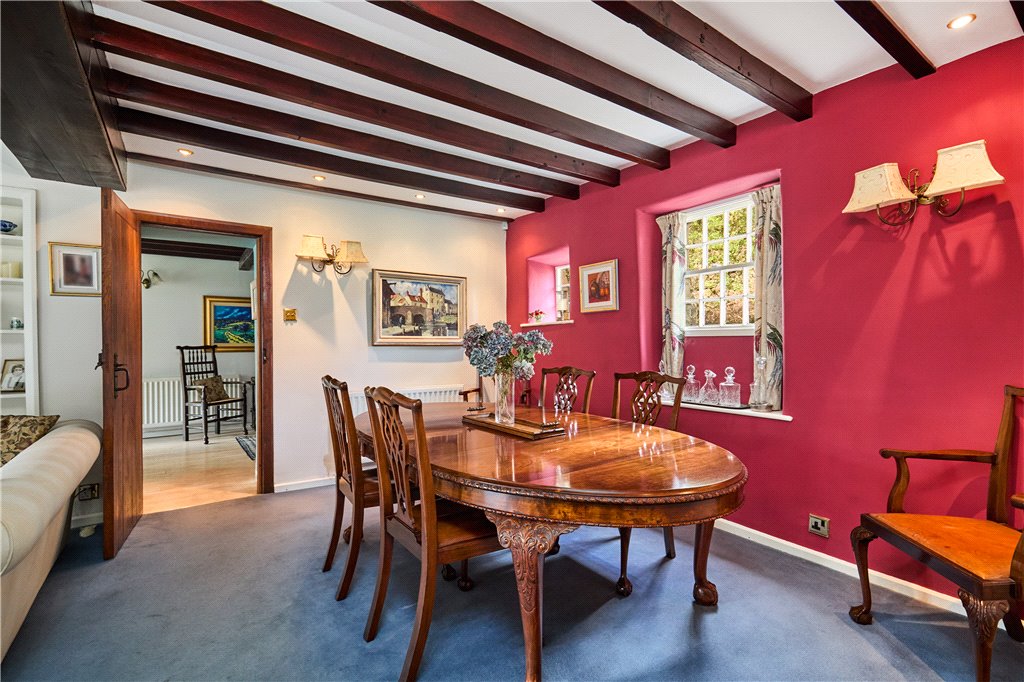 The property has been significantly extended and adapted over the years and now offers very comfortable five bedroom family accommodation with two well-proportioned reception rooms, as well as a dining area and kitchen which combine to create excellent free flowing space – with the added potential to extend through into the adjoining garage. To the first floor there are five bedrooms in all, including a generous principal suite with with fitted wardrobes and a private bathroom off, whilst one of the double bedrooms has an extensive range of fitted wardrobes. Adjacent bedroom five could easily be used as a study/office.