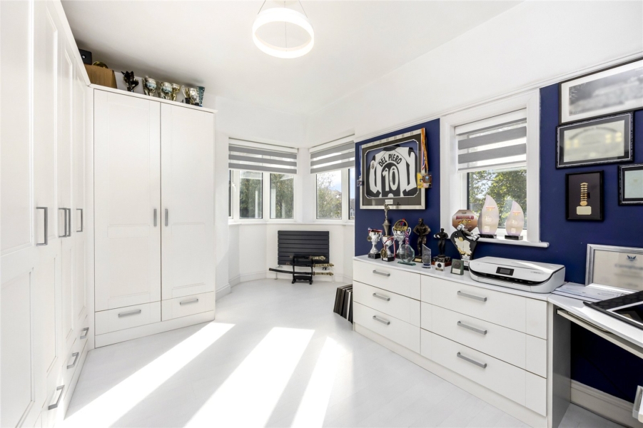 This sociable heart of the home connects seamlessly to multiple reception areas, including a substantial living room featuring a bay frontage and direct access to the garden. A further spacious reception room offers flexibility as a family room, home office or fifth bedroom, ideal for multi-generational living or remote working. A ground-floor shower room and utility area add practicality, while the integral garage provides excellent storage or potential for conversion (subject to the necessary consents).