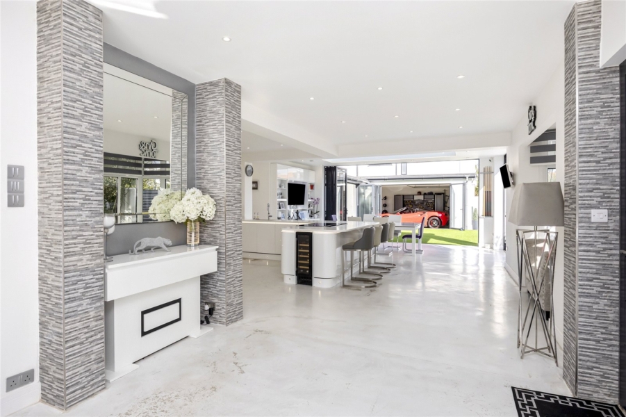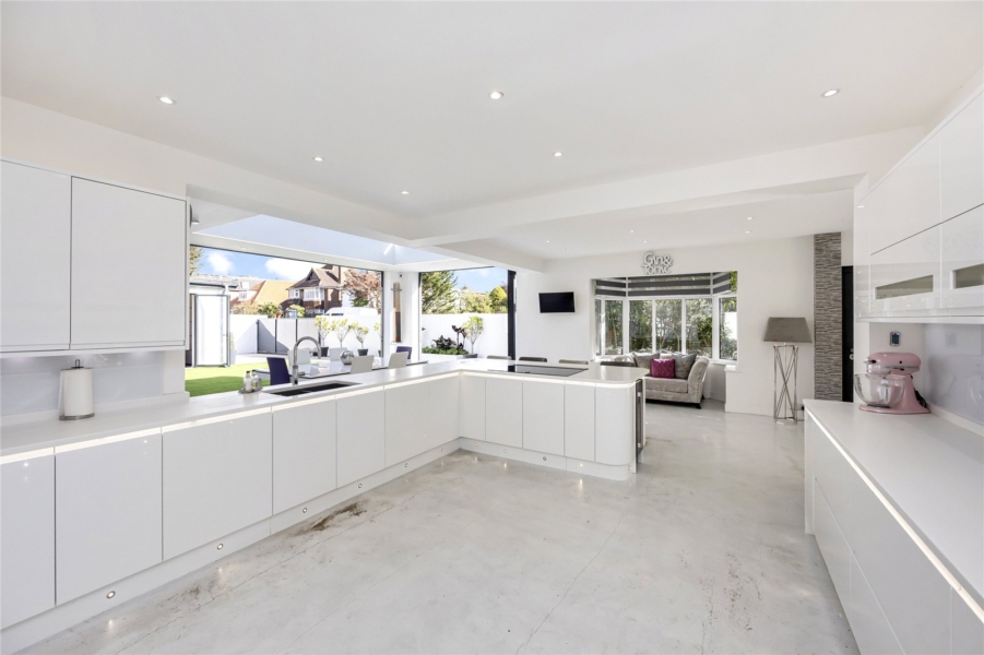 The ground floor provides a superb sense of scale and flow. A welcoming entrance leads through to an exceptional open-plan kitchen and dining room, thoughtfully arranged with ample workspace and room for large gatherings.