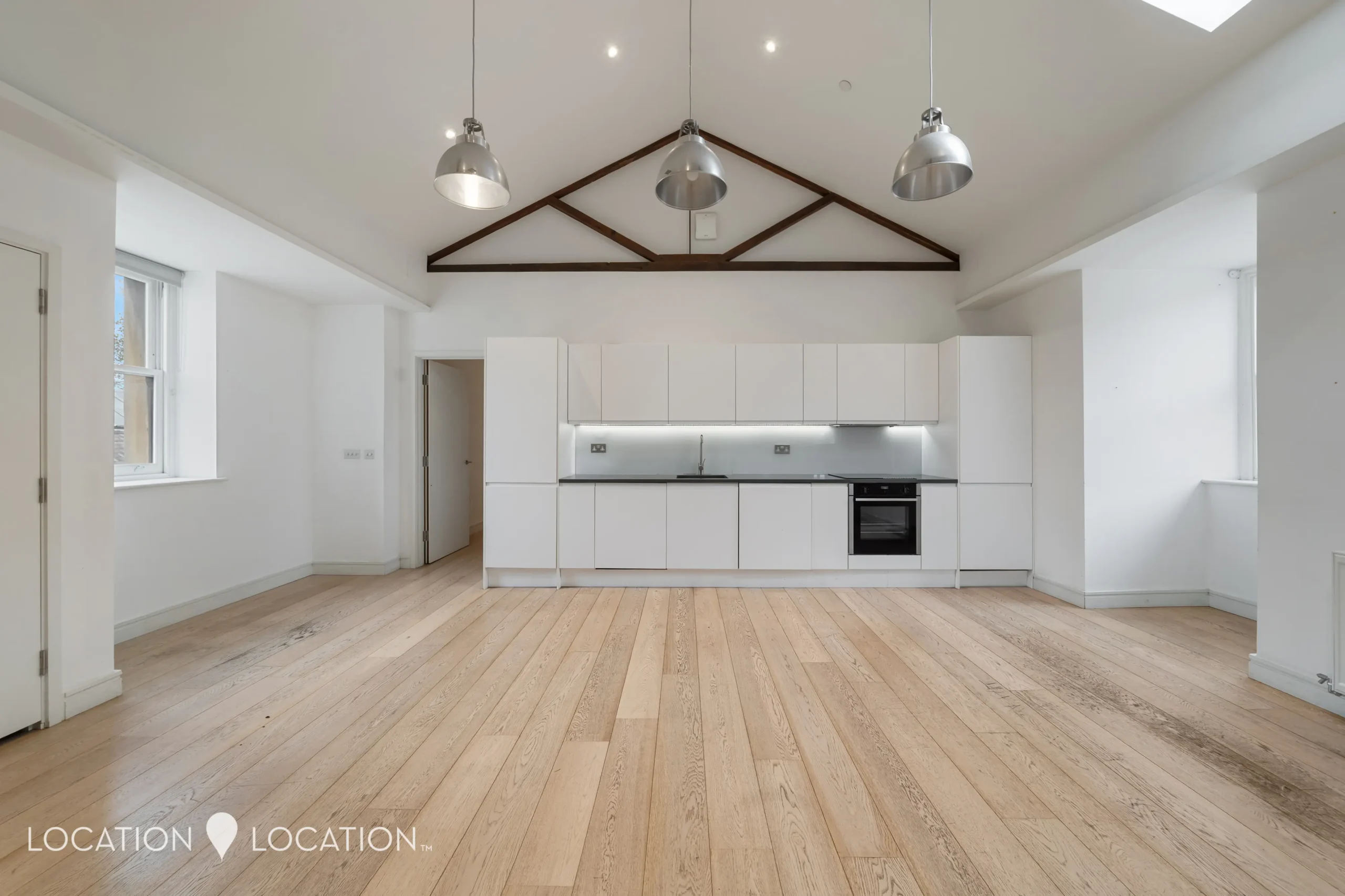 This spacious penthouse occupies the entire top floor of a former bank overlooking Newington Green. Coming complete with a private roof terrace, this exceptional apartment is sold with a new 250 year lease, too.