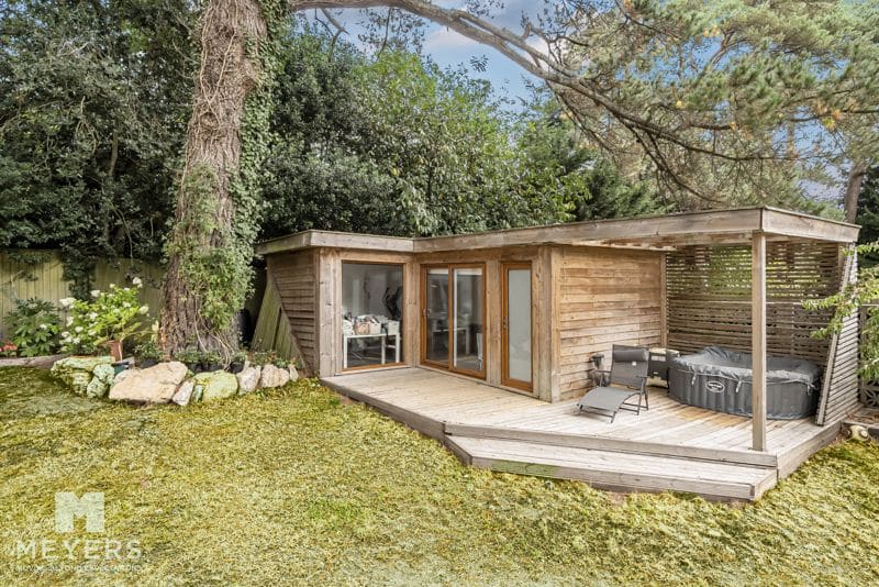 Outside, the private rear garden offers peace and seclusion, framed by mature trees and generous lawn space. A large summer house occupies a leafy corner of the rear garden and offers a large space with light, power and water. Whether it’s al fresco dining or room for the kids to run free, the garden is your own private oasis.