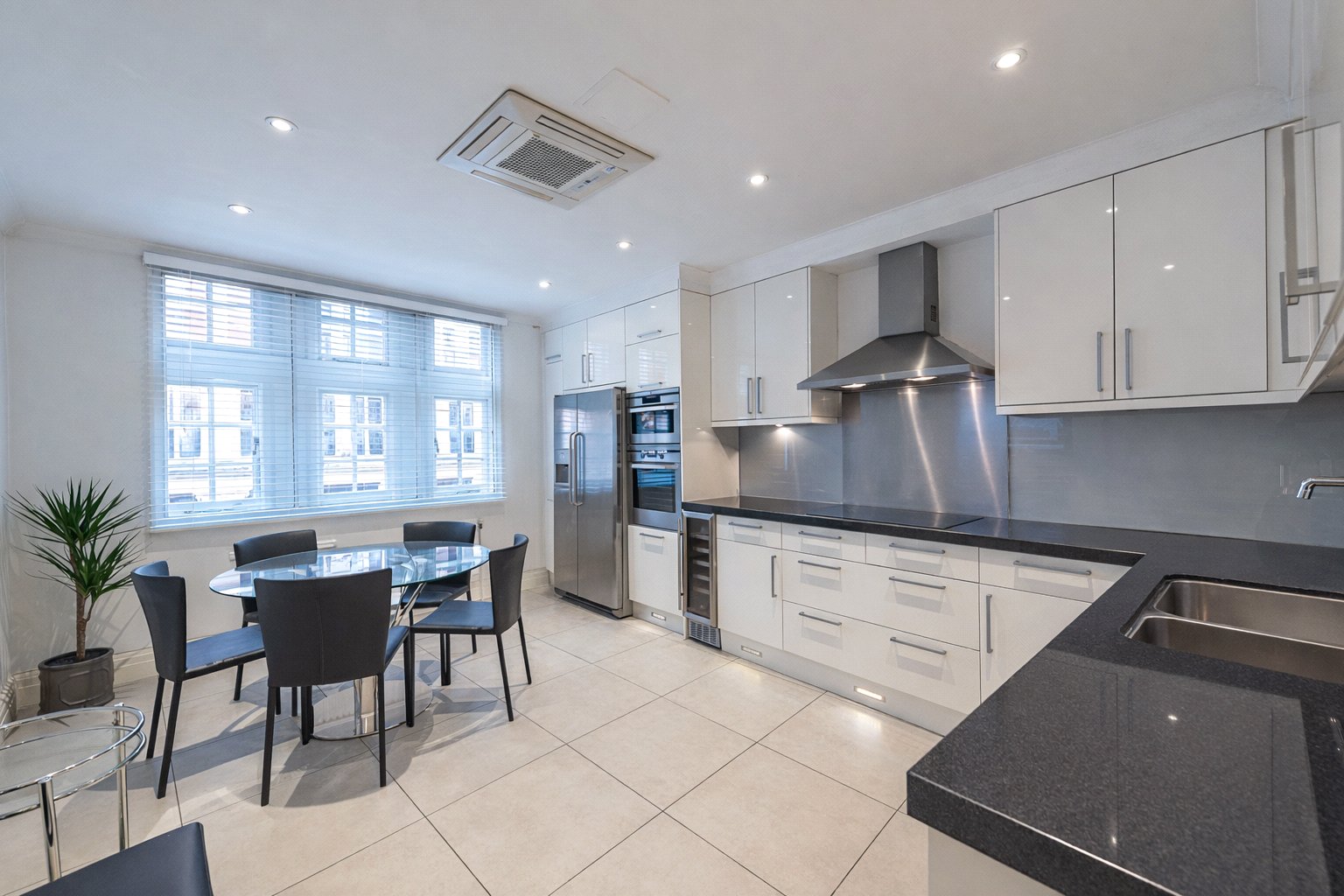 Recently refurbished to a high specification in a bright, contemporary scheme, the property combines elegant entertaining space with comfortable family living. The modern kitchen is fitted with premium appliances, while multiple reception areas provide flexibility for formal dining, relaxed living, or a home office. The private balcony offers uninterrupted Hyde Park views.