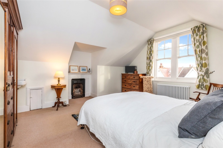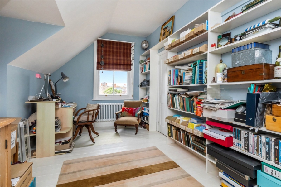 As you ascend to the top floor it truly highlights the benefit of this being an originally built three storey house. The staircase retains its sense of proportion and character, and the space is bathed in natural light. Here are two charming bedrooms, both fitted with extensive storage and original fireplaces, along with a separate bathroom. Additional eaves storage is neatly tucked away off the landing.