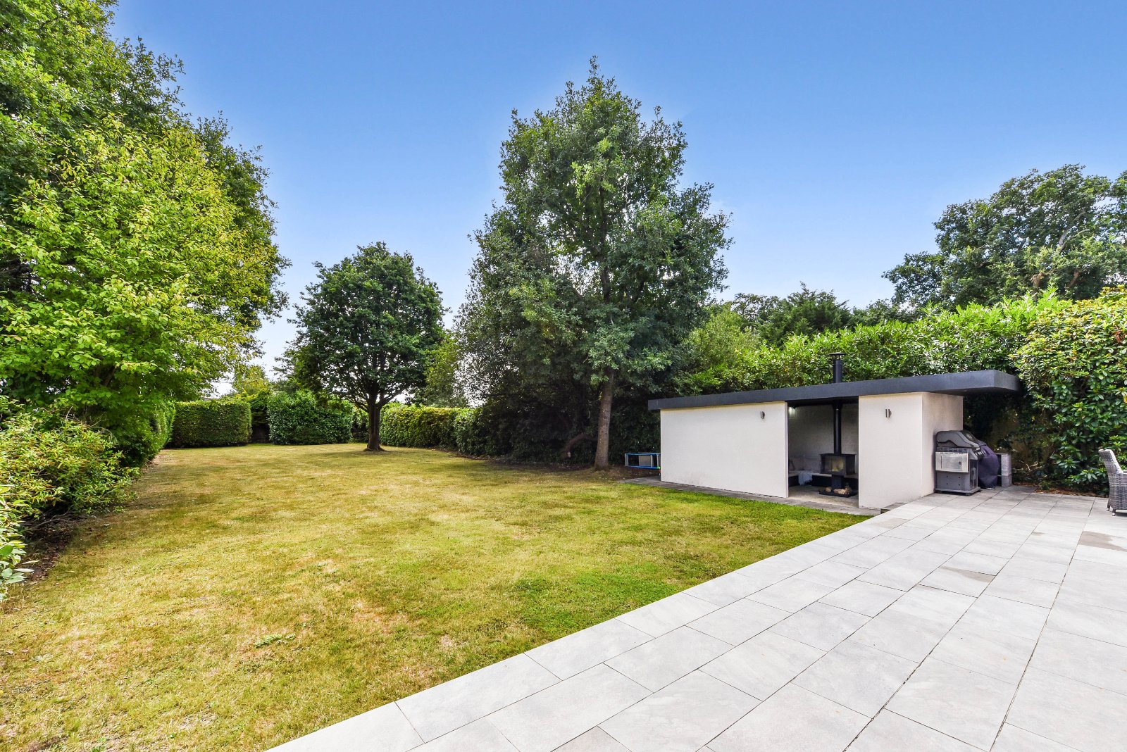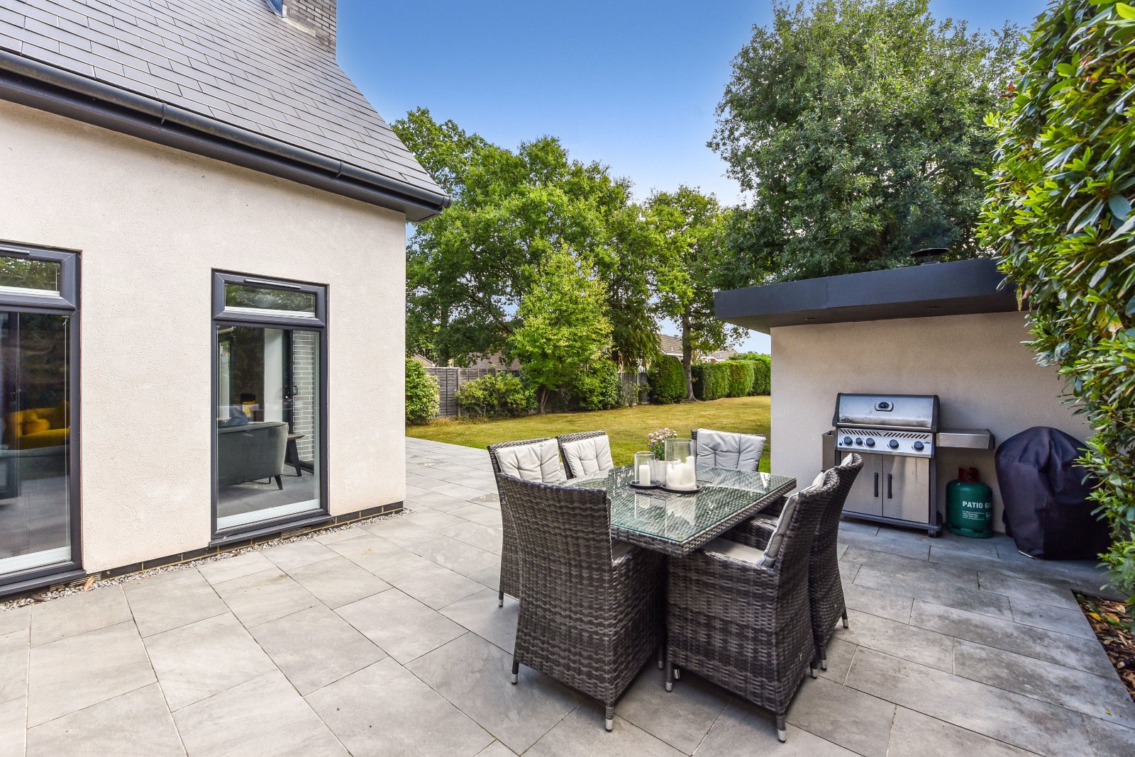 A side access gate opens into the rear garden which has a large terrace that leads onto a substantial level and private lawn enclosed by hedgerow and mature trees. There is a detached garden room and storage which could be fully converted into a home office / gym is so desired.