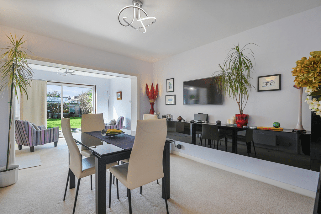 The property is approached via a welcoming porch leading into a spacious entrance hallway. To the front there is a bright and well-proportioned reception room, perfect for both formal entertaining and everyday family use. To the rear, a separate dining room flows seamlessly into an extended L-shaped kitchen, creating an impressive open-plan feel and a fantastic hub of the home.