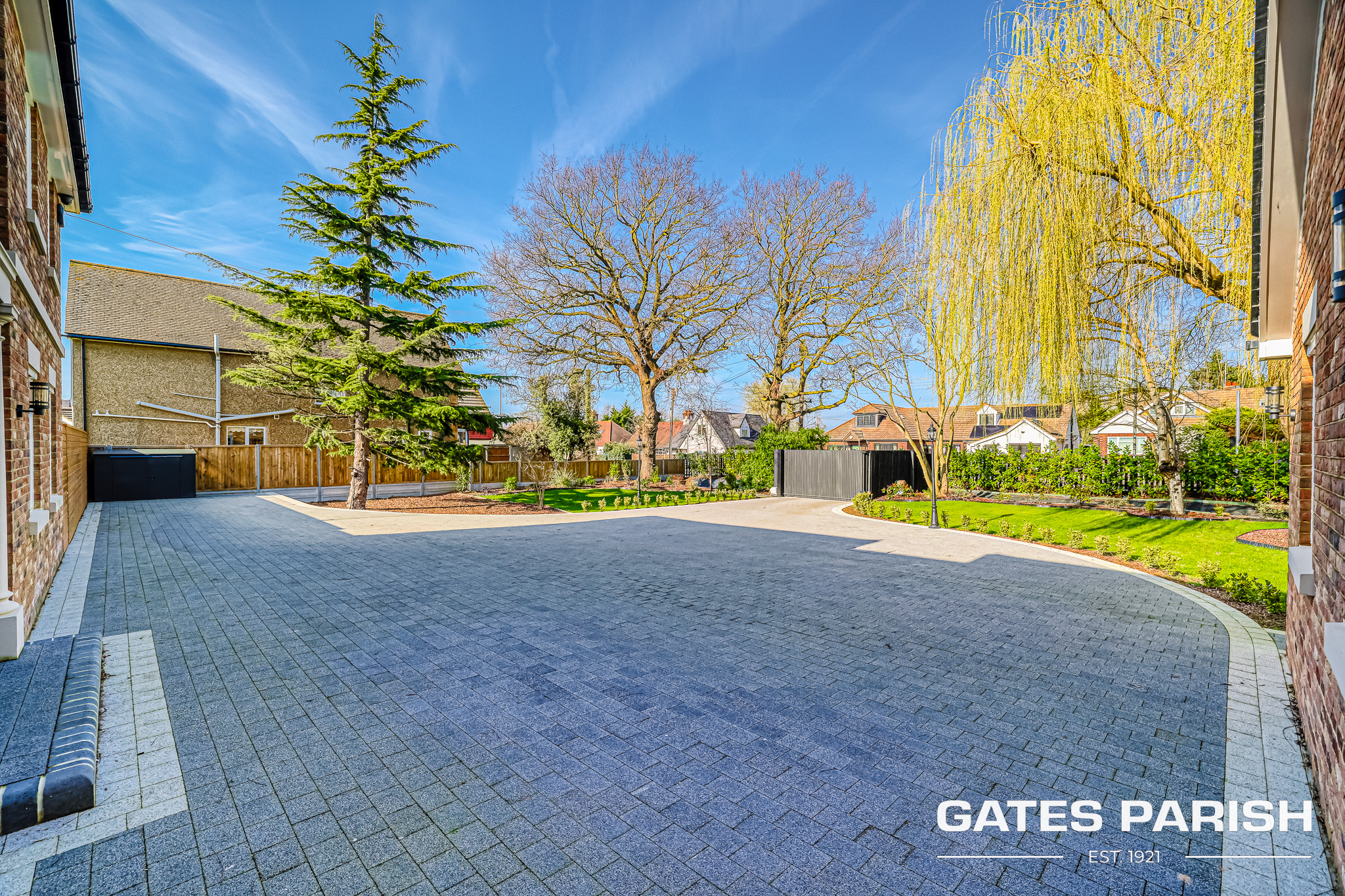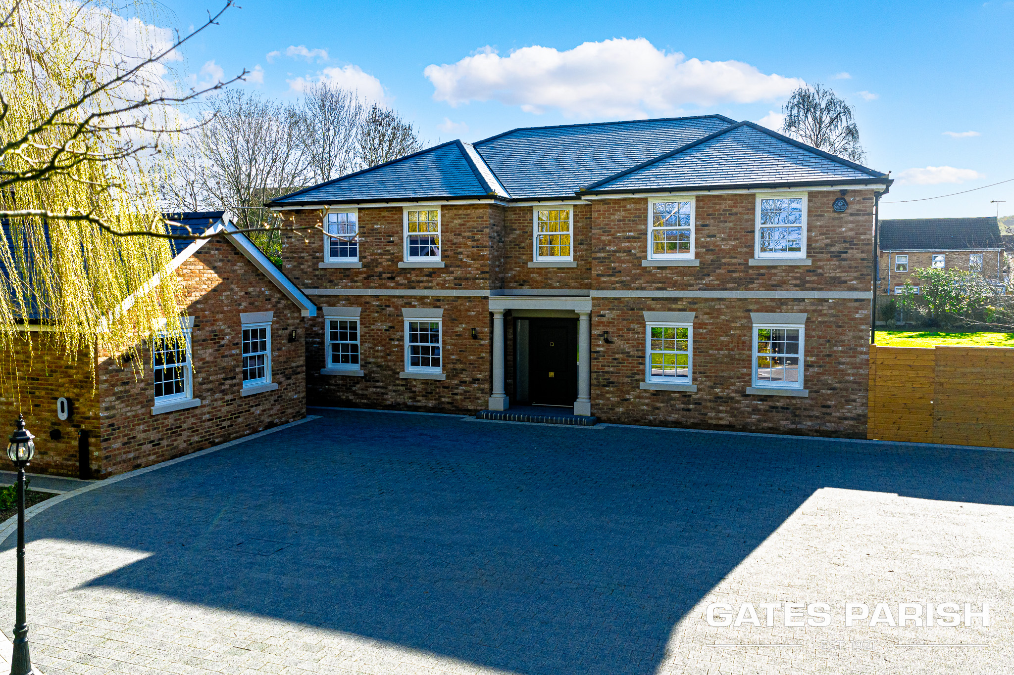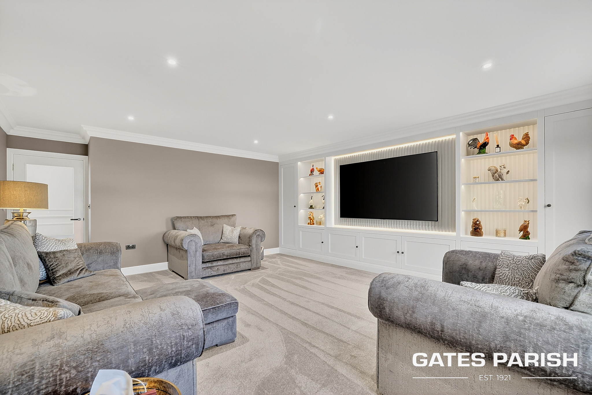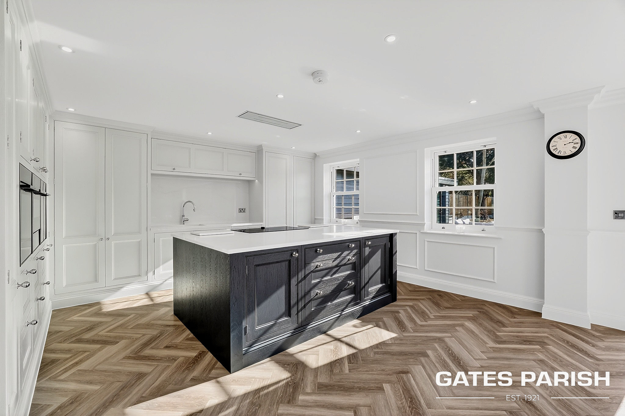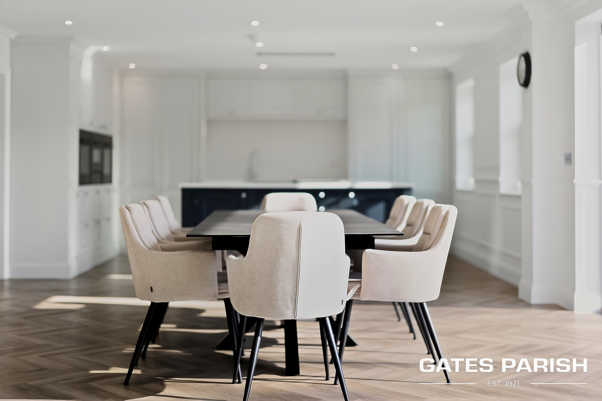 Approached via electric gated entrance, the home immediately impresses with its striking presence and exceptional craftsmanship. Upon entering through the RK front door, you are welcomed into an elegant interior where Amtico herringbone flooring flows through the main living areas, setting the tone for the quality found throughout the property.