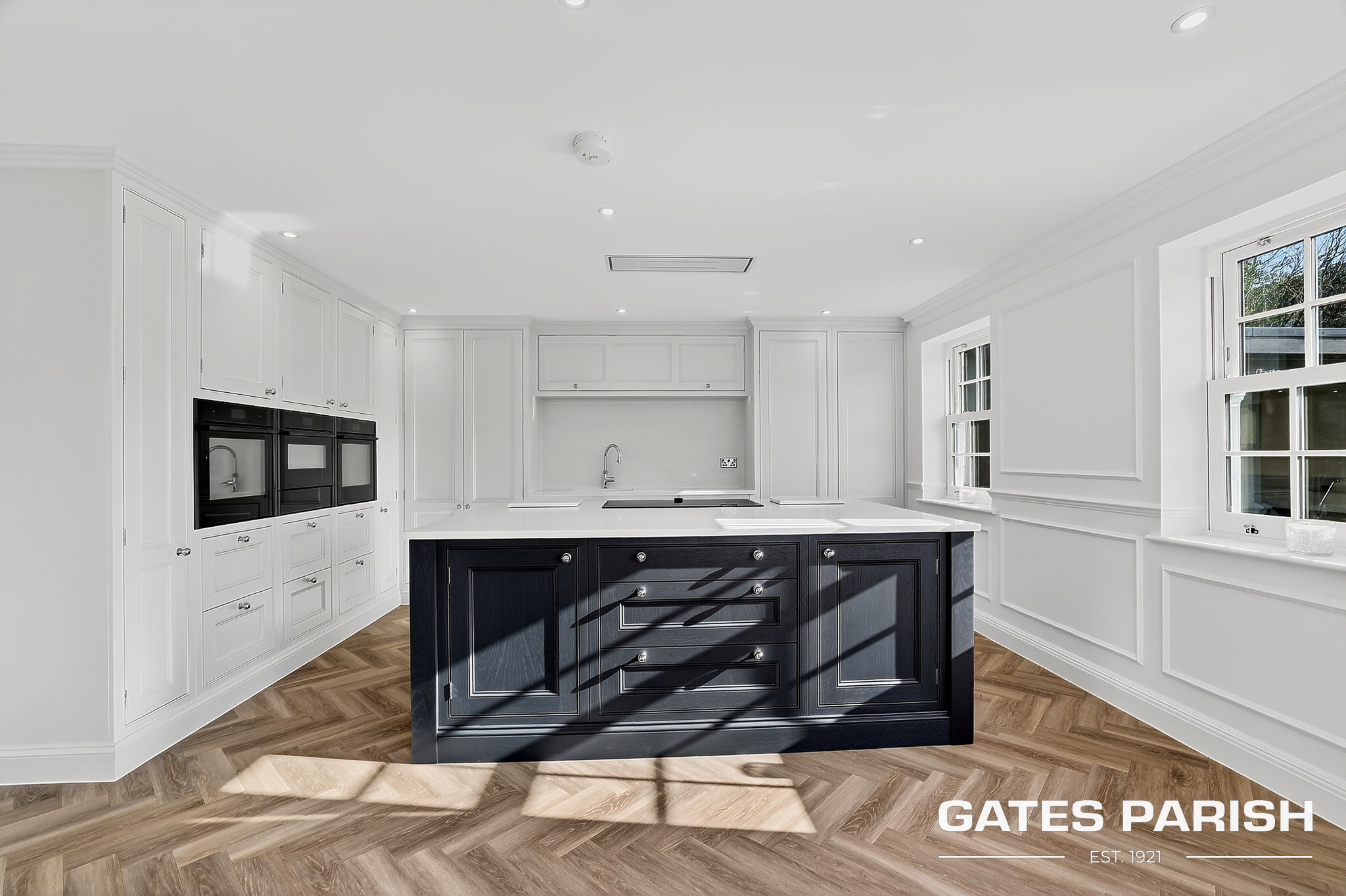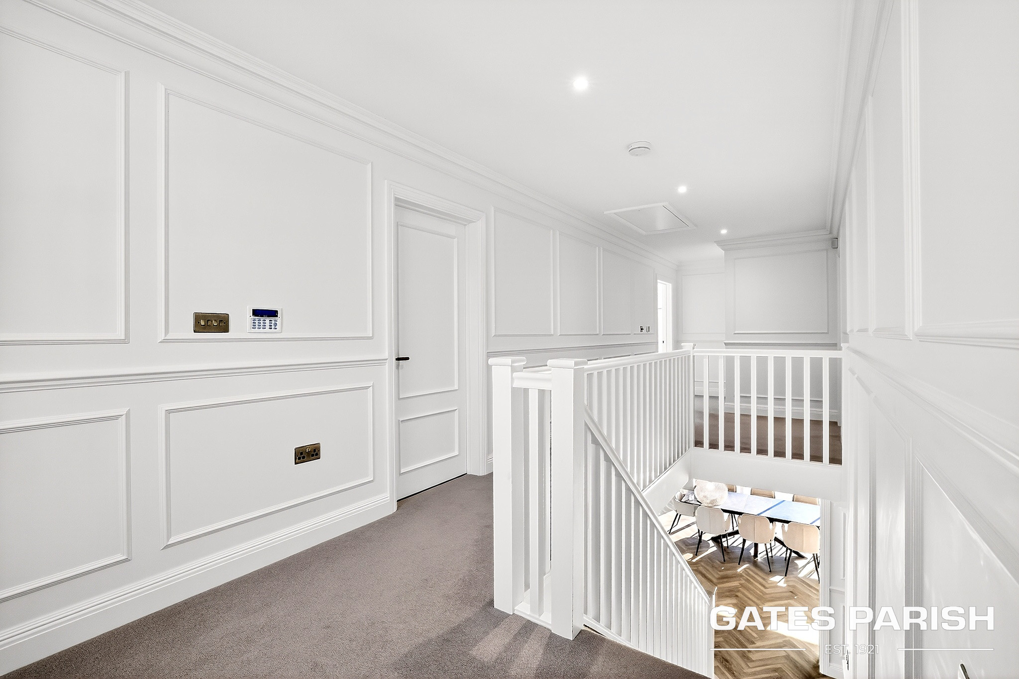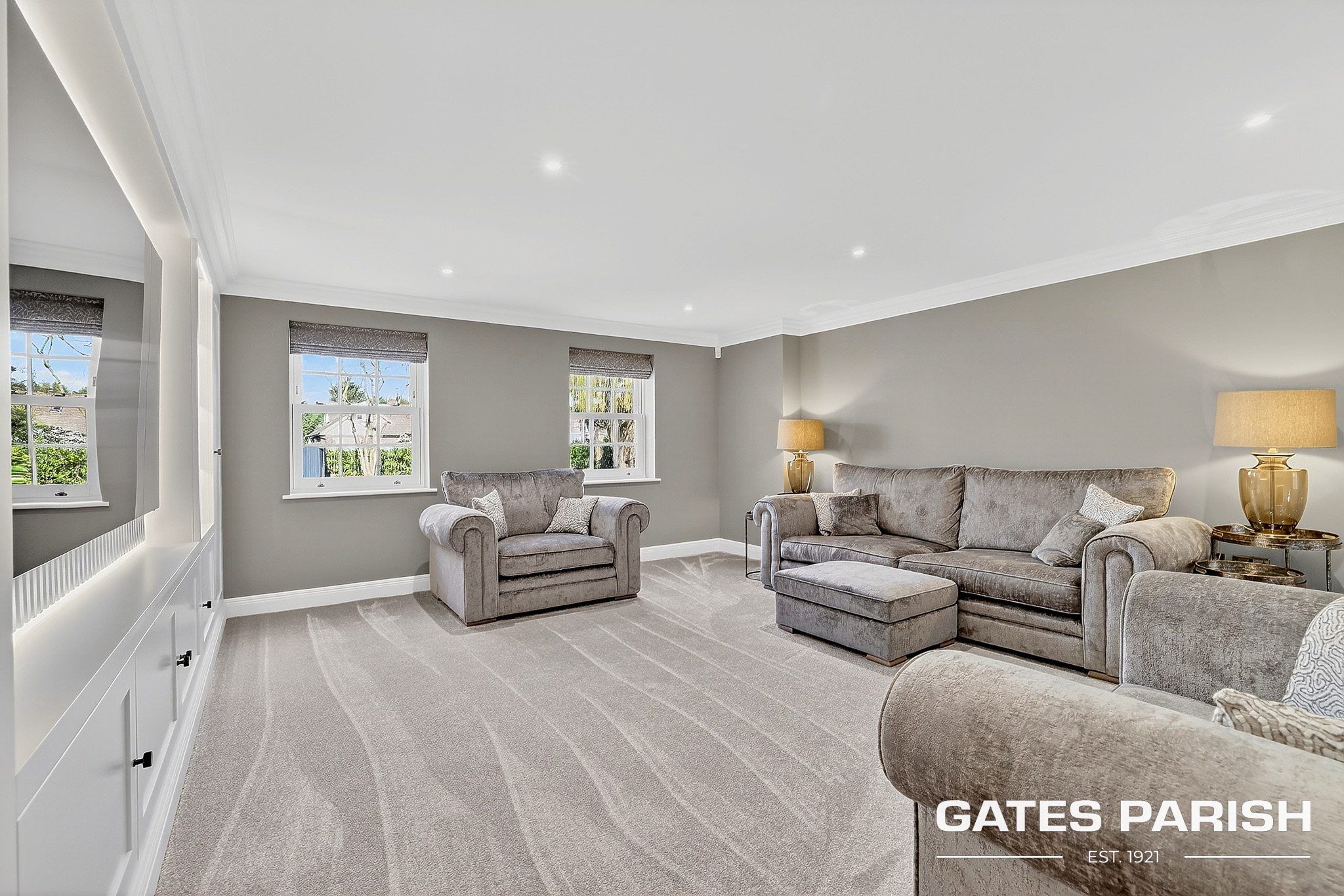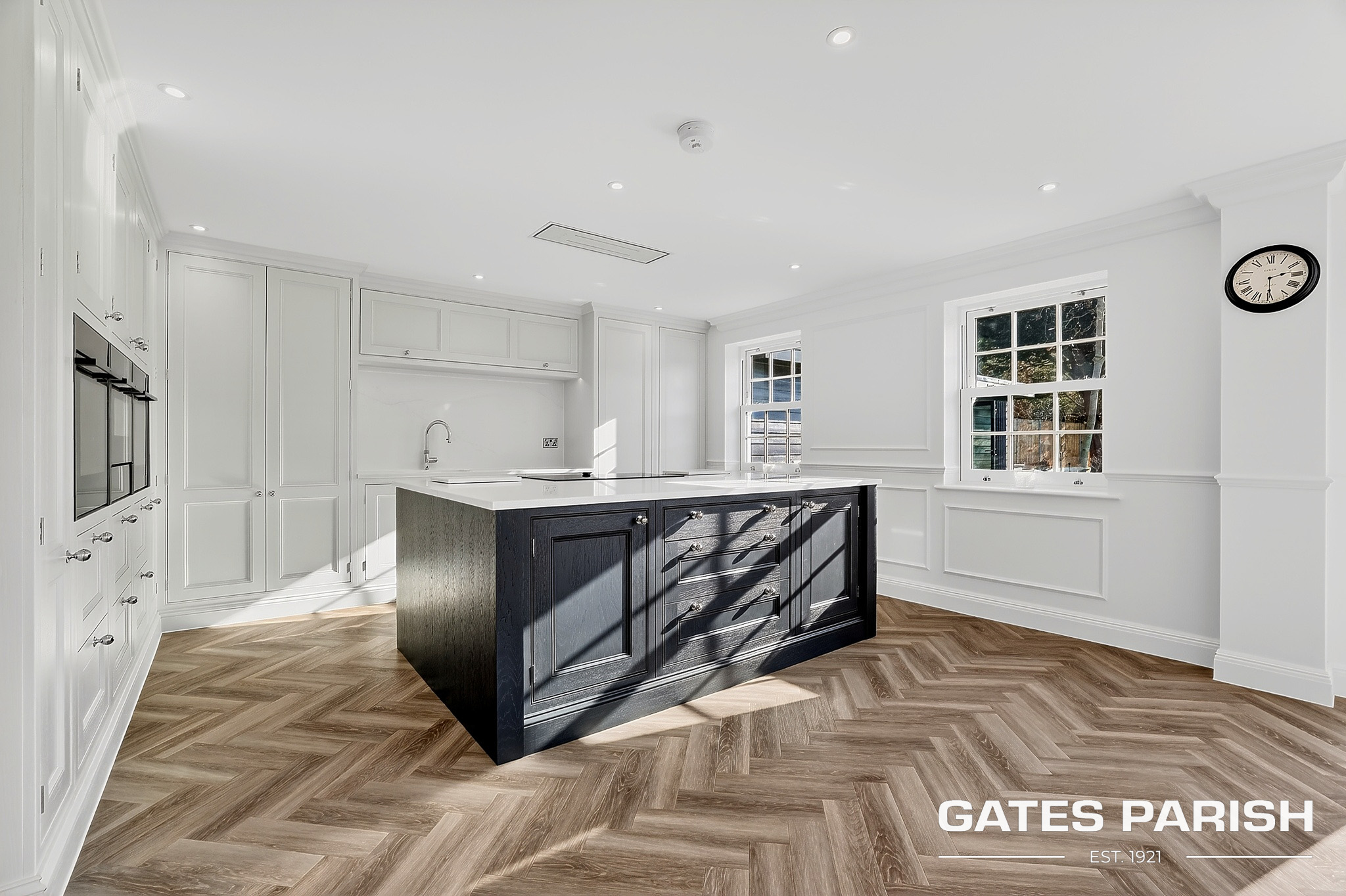 Approached via electric gated entrance, the home immediately impresses with its striking presence and exceptional craftsmanship. Upon entering through the RK front door, you are welcomed into an elegant interior where Amtico herringbone flooring flows through the main living areas, setting the tone for the quality found throughout the property.