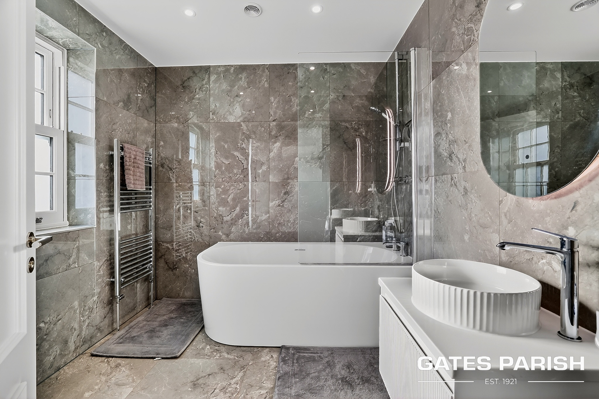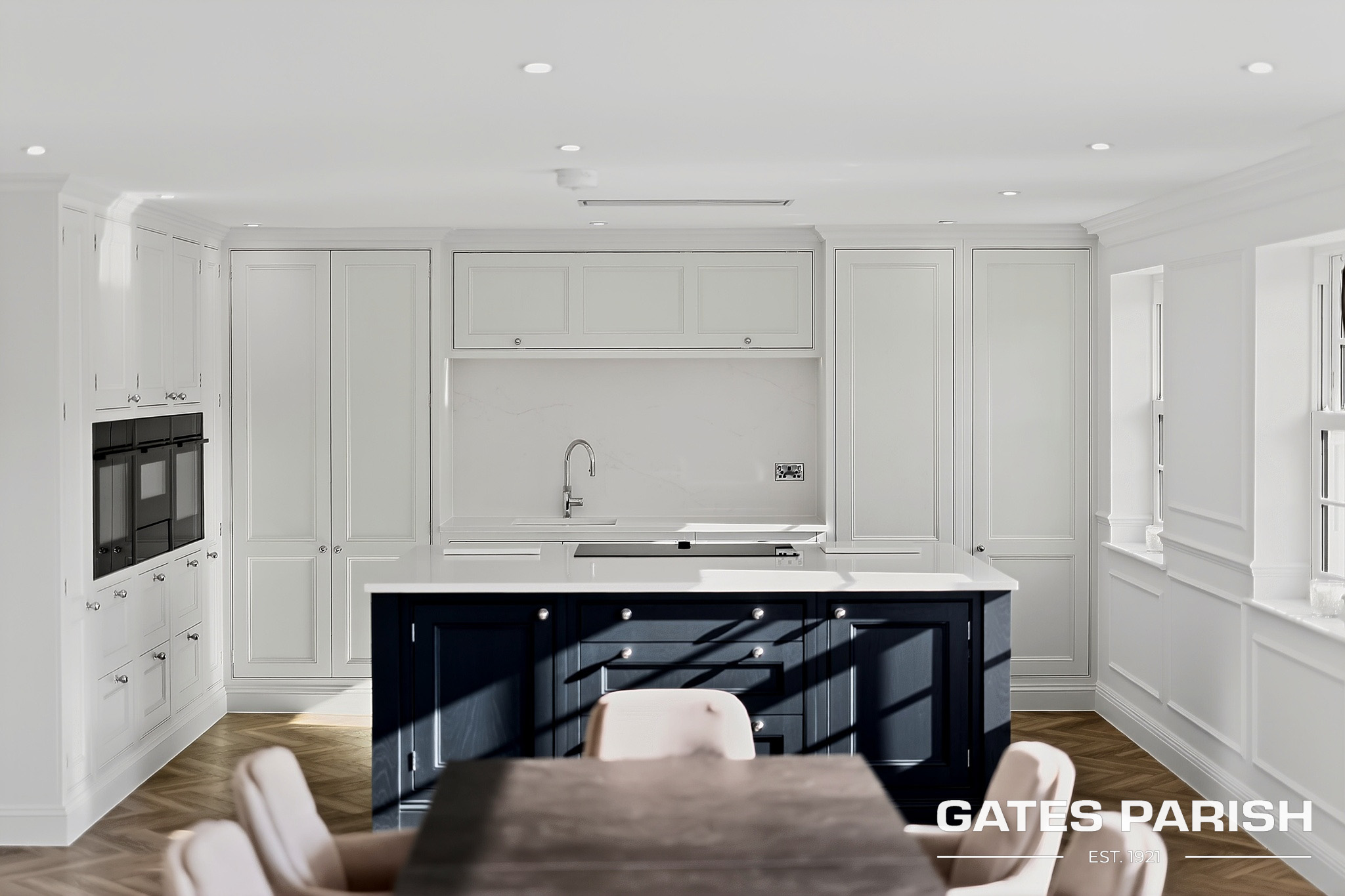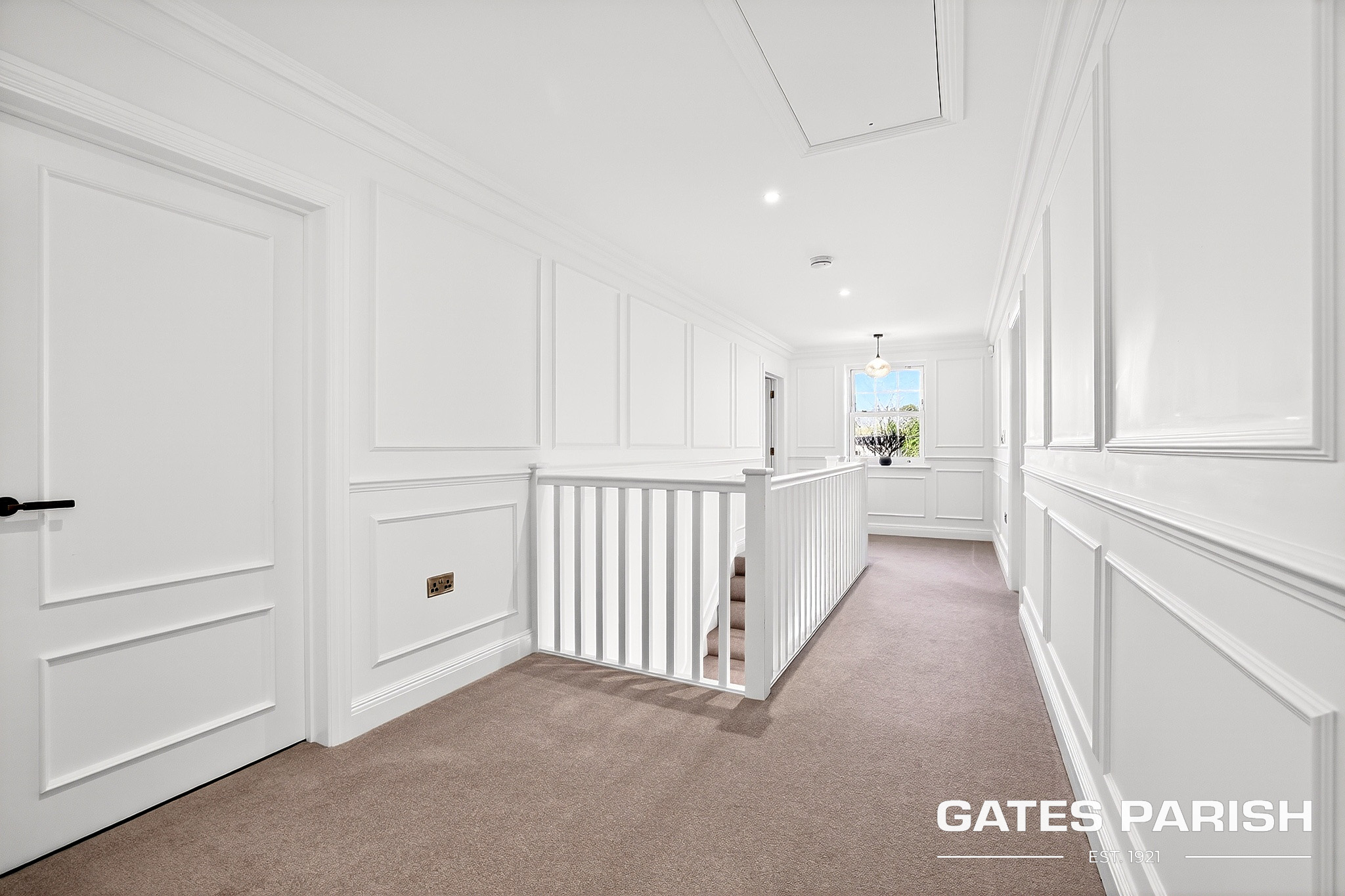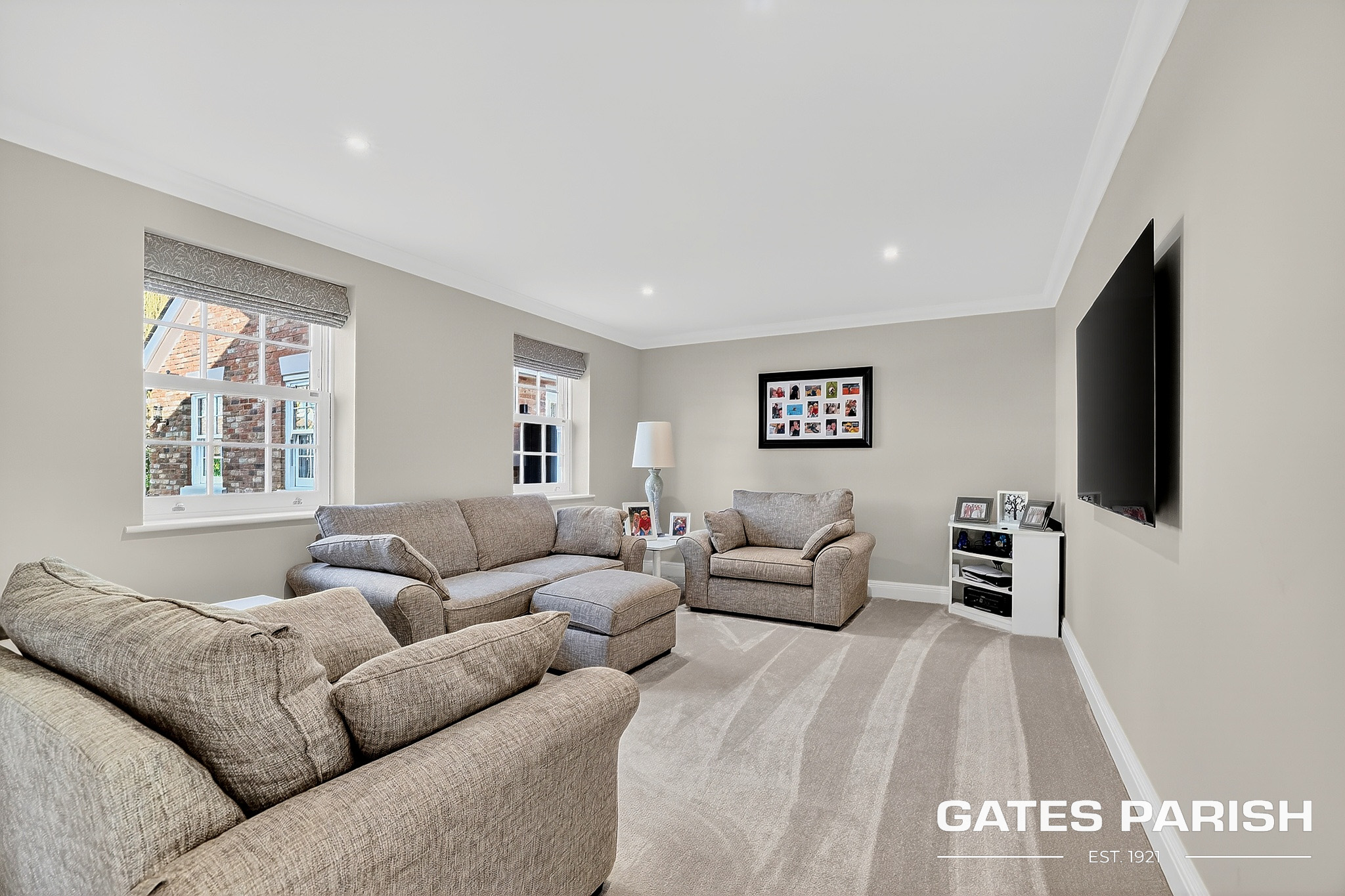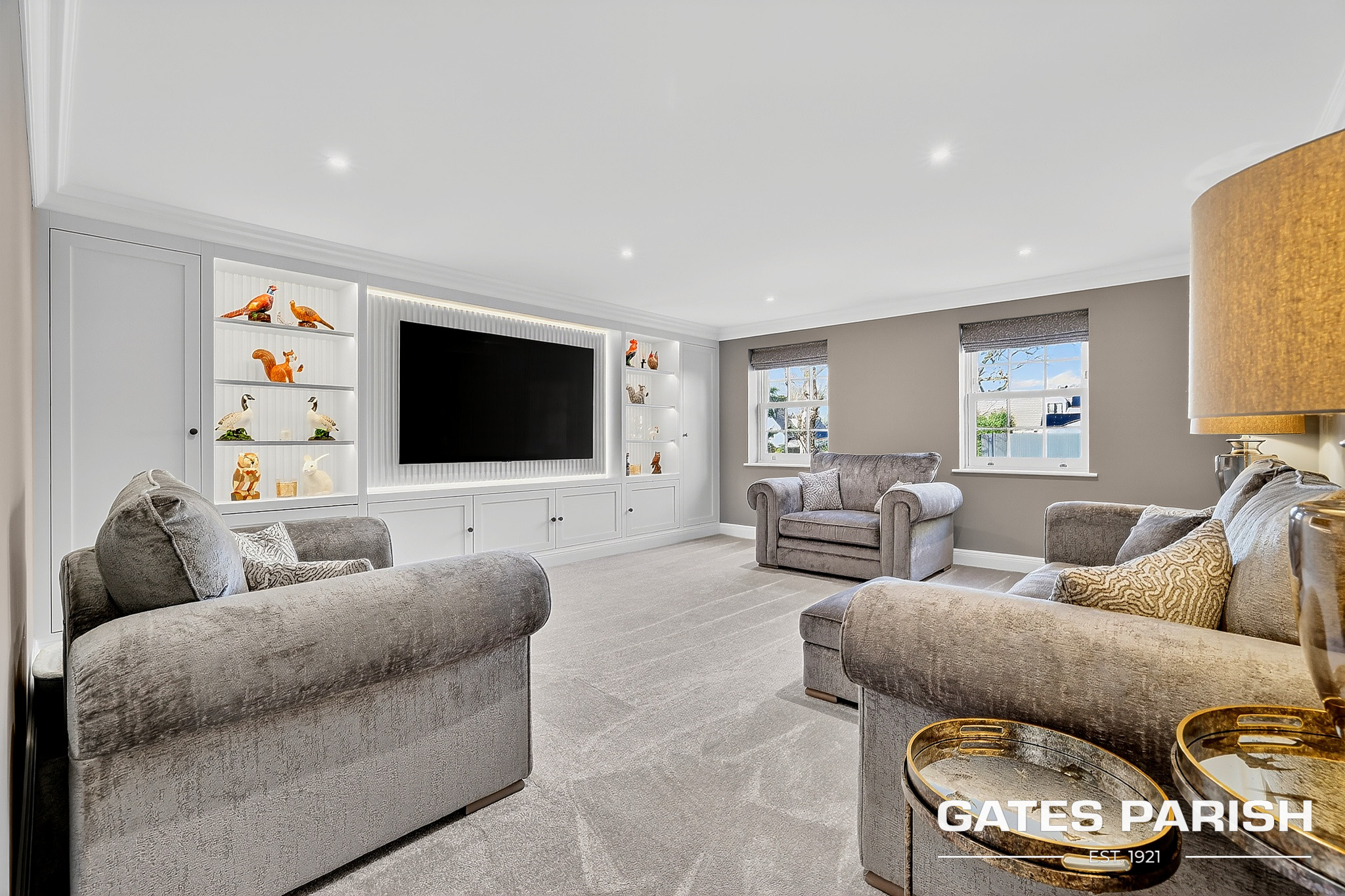 Approached via electric gated entrance, the home immediately impresses with its striking presence and exceptional craftsmanship. Upon entering through the RK front door, you are welcomed into an elegant interior where Amtico herringbone flooring flows through the main living areas, setting the tone for the quality found throughout the property.