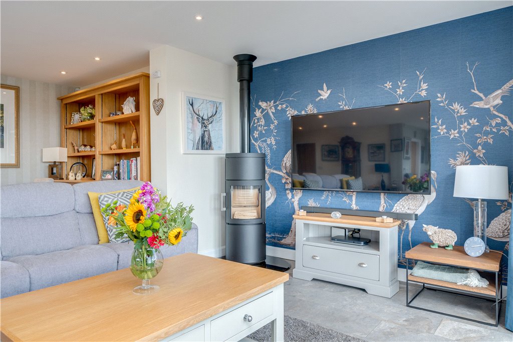 The house is approached via a sweeping tarmacadam driveway which provides off street parking for several vehicles and leads to a detached double garage with remote control shutter door. There are raised lawned areas at this elevation with a mature hedge line providing a good degree of privacy and seclusion. The south facing front garden can be accessed at either side of the property, and the size and presentation has to be seen to be fully appreciated. Various paved and timber decked patios provide seating areas to make the most of the sunlight this elevation enjoys. Large, predominately level lawns provide a wonderful family amenity, whilst well established hedging offer welcome sense of privacy. There is also a new summerhouse for those cozy al-fresco evenings to be enjoyed in all seasons.