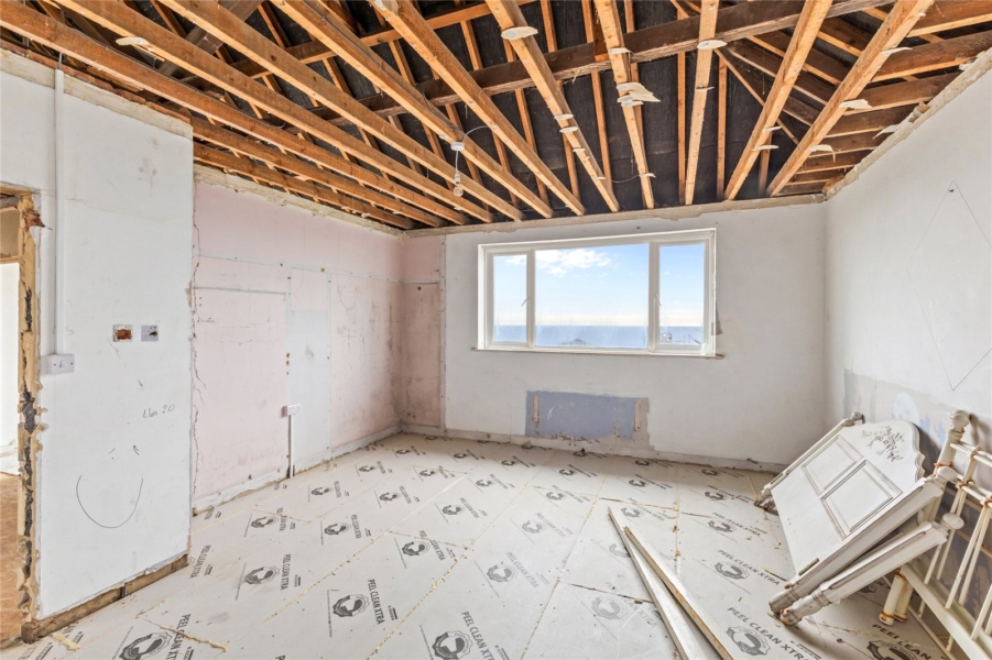Currently extending to over 2,000 sq ft, the property is empty and ready for immediate occupation – perfect for those looking to move straight in, modernise or embark on a full scale renovation project. The ground floor features four spacious reception rooms, while upstairs there are four bedrooms, including access to a south facing balcony that perfectly captures the coastal outlook.