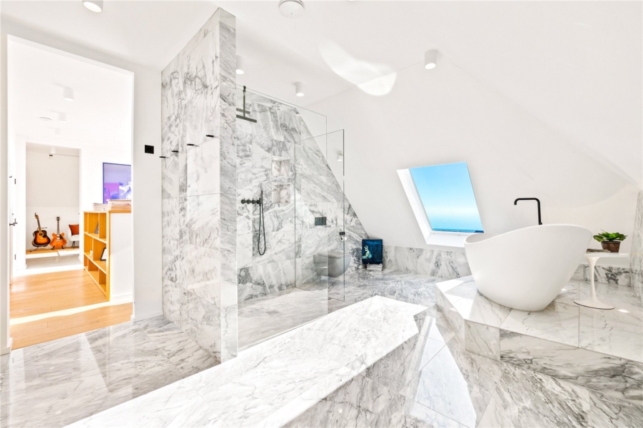 Engineered for sustainability as much as style, the home features an air source heat pump and underfloor heating throughout, drastically reducing carbon footprint and energy bills while enhancing year-round comfort.